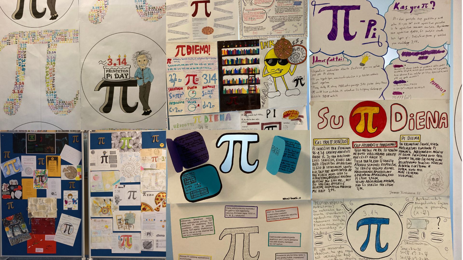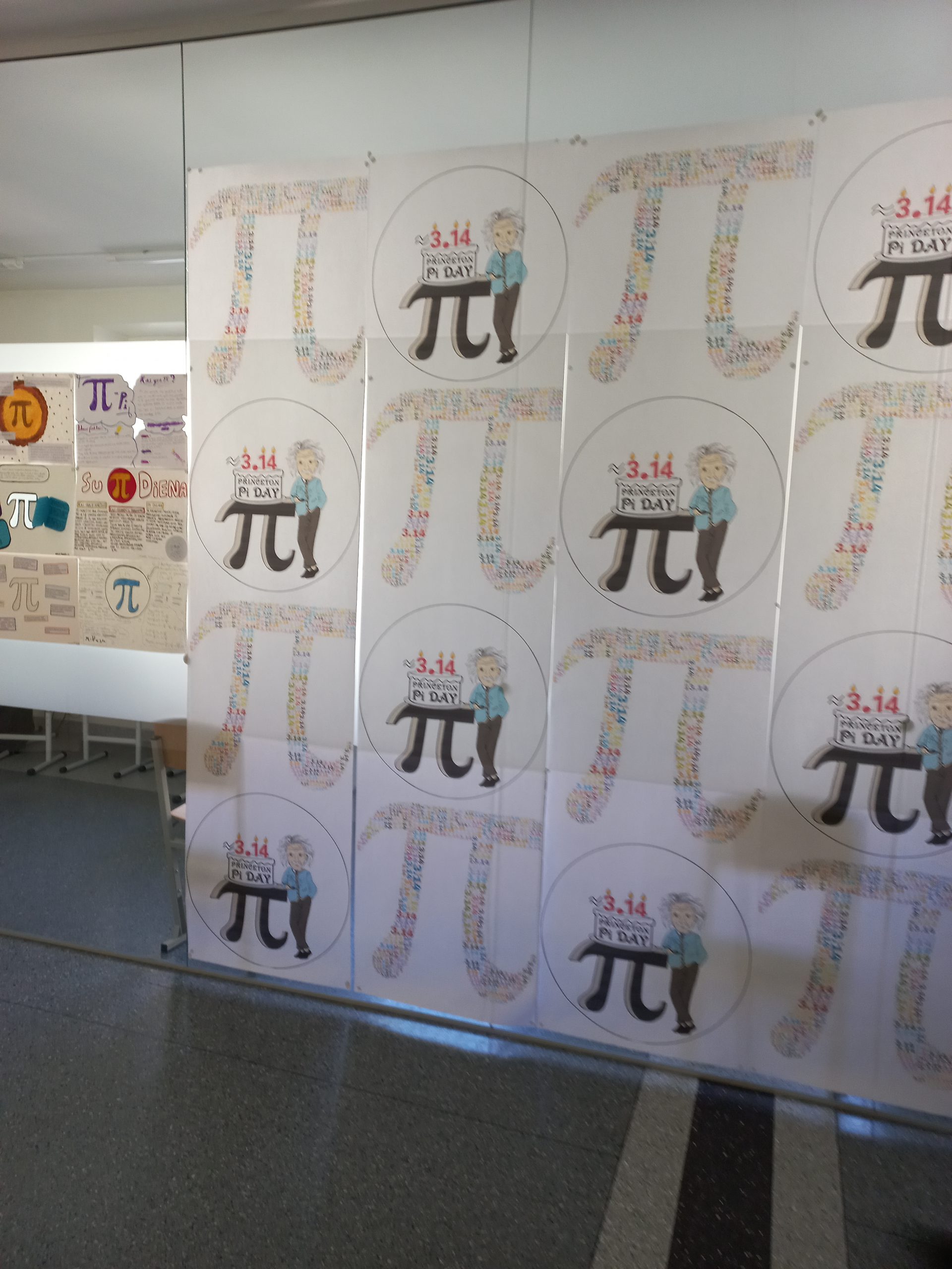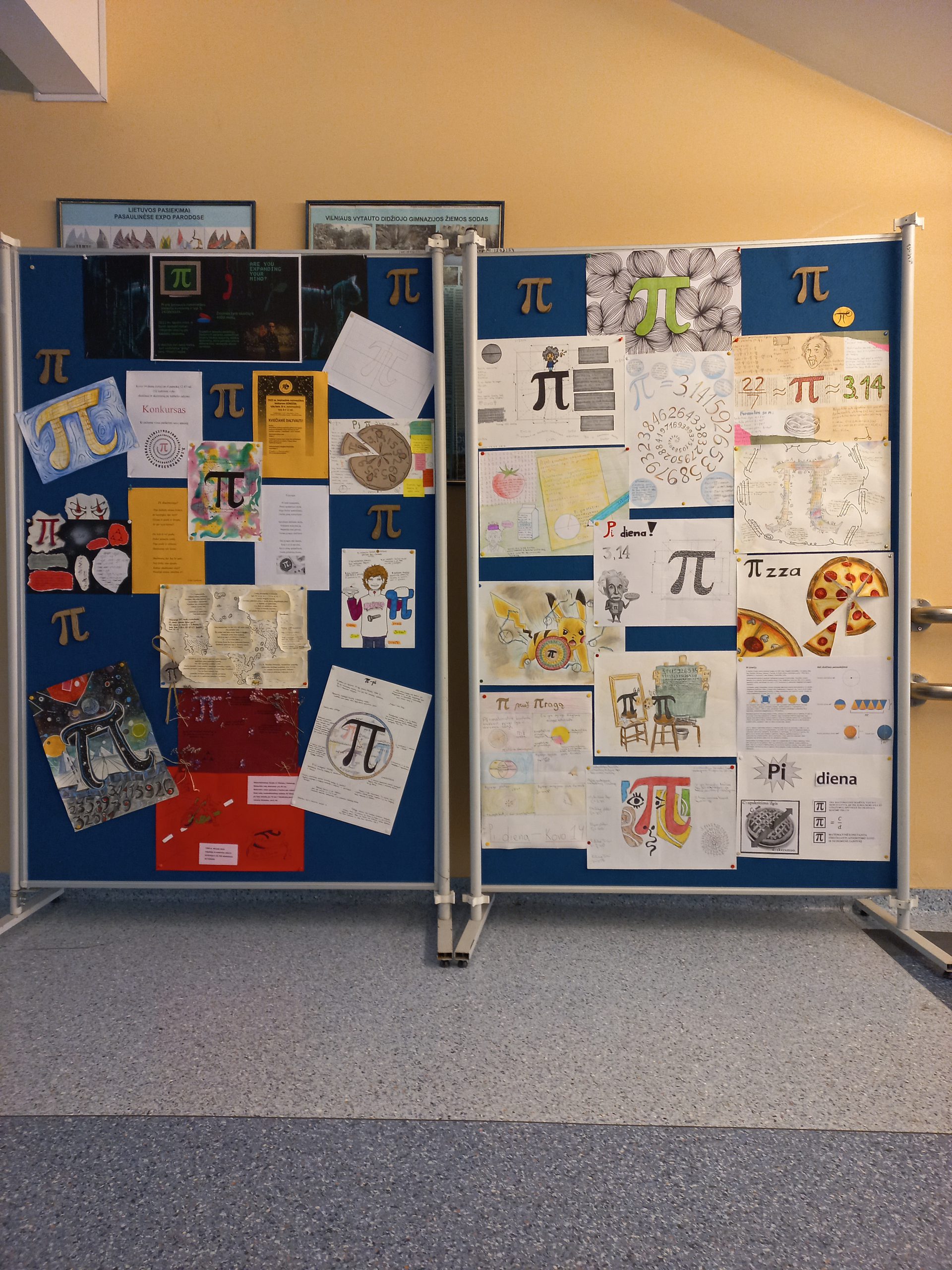 Paminėti π dieną pradėjome ruoštis dar vasario mėnesį: I ir III gimnazijos klasių mokiniai rengė plakatus apie skaičių π, o II gimnazijos klasių mokiniai paruošė informacines korteles su įdomiais ir šmaikščiais faktais apie skaičių π,  tad kiekvienas, įėjęs pro gimnazijos duris ir išsitraukęs kortelę, galėjo sužinoti daug negirdėtų paslapčių bei keistų sutapimų apie skaičių π. Stendą prie gimnazijos žiemos sodo papuošė mokinių parengta darbų apie žymiąją konstantą galerija!
