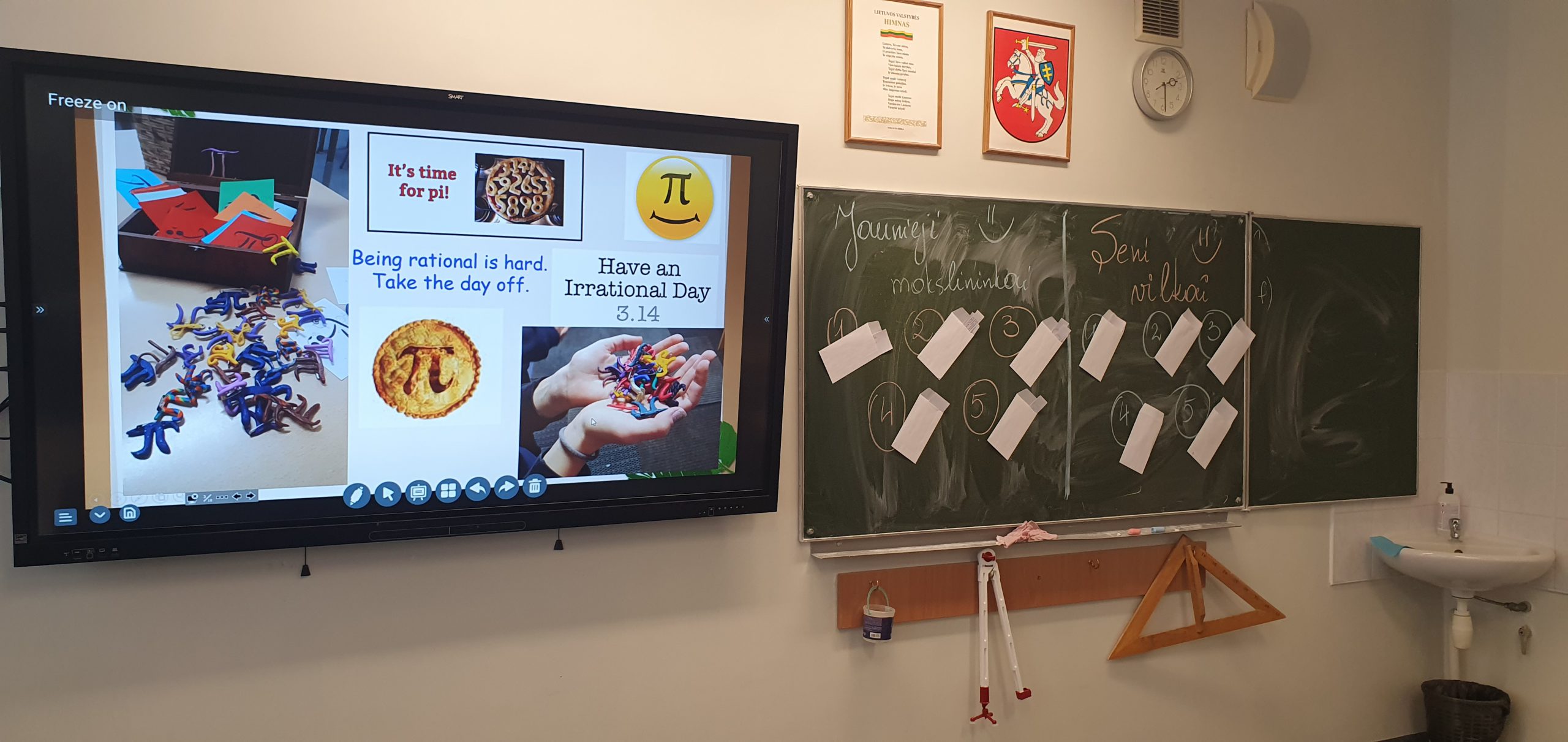 Kovo 14 dieną mūsų mokykloje vyko π dienos minėjimas. Nuo 8 valandos ryto visi, įėję į gimnaziją, pasipuošė mokinių kurtomis emblemomis su viena labiausiai žinomų konstantų pasaulyje.