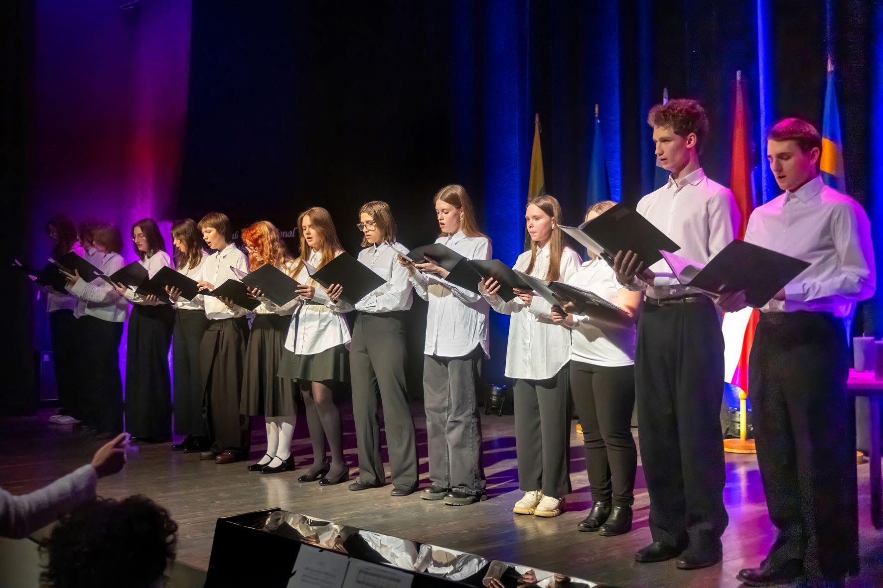 Nuoširdžiai dėkojame mokytojams už aukščiausio lygio mokinių parengimą ir mūsų gimnazijos bendruomenei – už menines programas, savanorystę ir pagalbą kuriant šventinę atmosferą svečiams. Ypatingas ačiū mokinių šeimoms, kurios atvėrė savo namų duris – delegacijos nuoširdžiai stebisi, kaip mums pavyko rasti tiek šeimų, pasirengusių priimti jaunus žmones iš užsienio.