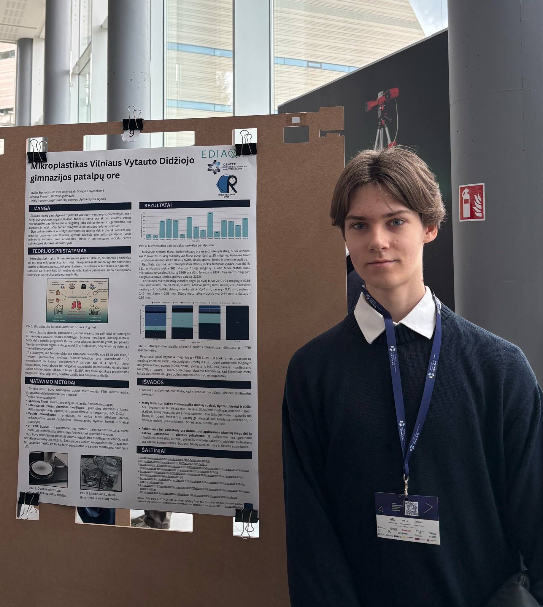 Gegužės 16 d. II d kl. mokinys Povilas Bernotas pristatė biochemijos tiriamąjį darbą „Mikroplastikas Vilniaus Vytauto Didžiojo gimnazijos patalpų ore“ Open Readings 2025 konferencijoje.