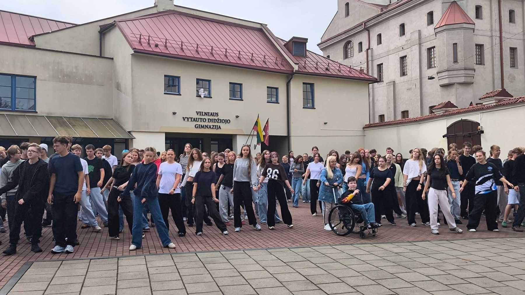 Vadovaujami direktoriaus ir nuostabių gimnazijos alumnių Mišel Karolinos ir Simonos, devintokai labai greitai įsitraukė į choreografijos kūrimą ir netrukus šoko VISI kartu. Buvo tiek daug geros energijos, kad atrodė visi tapo viena didelė šeima.