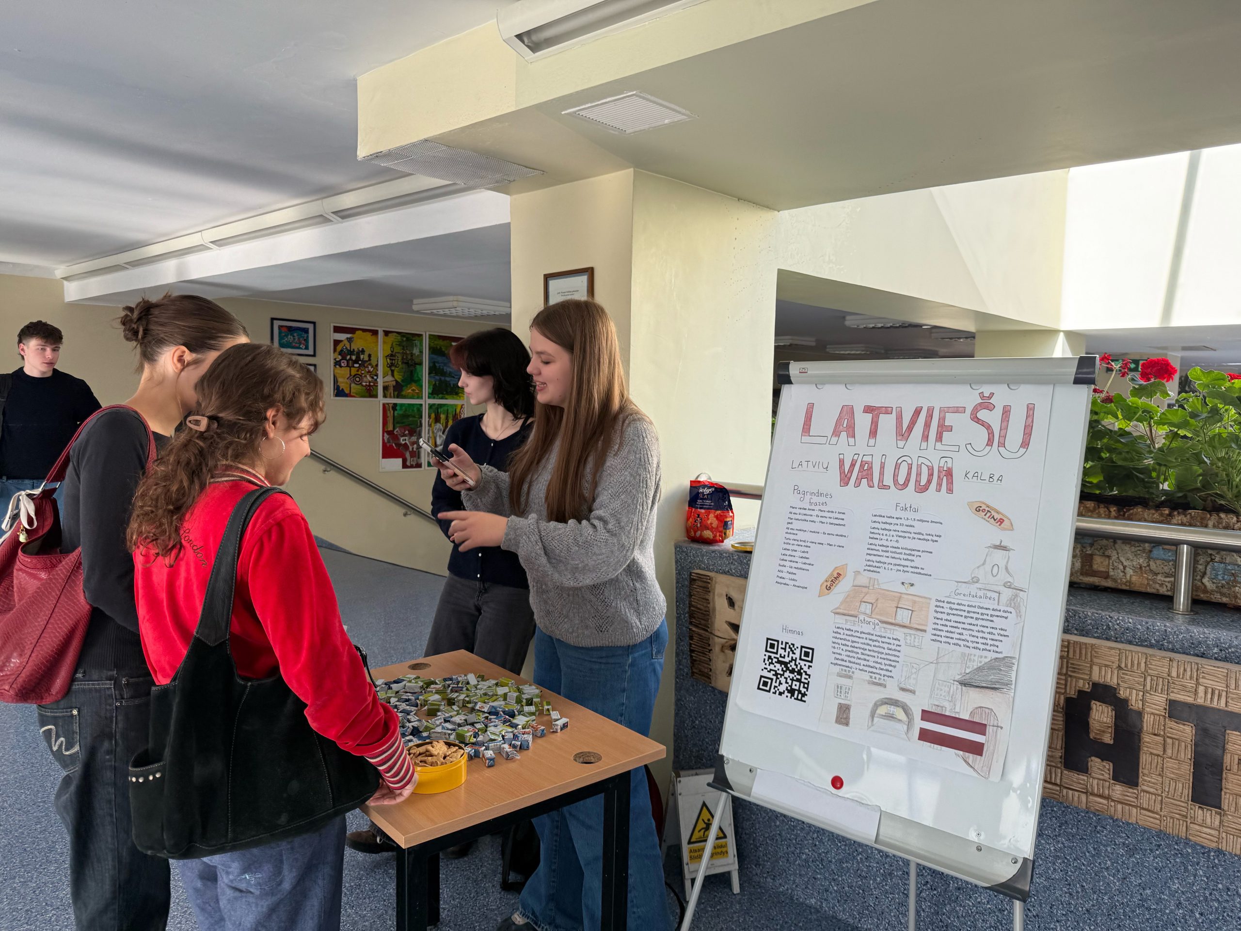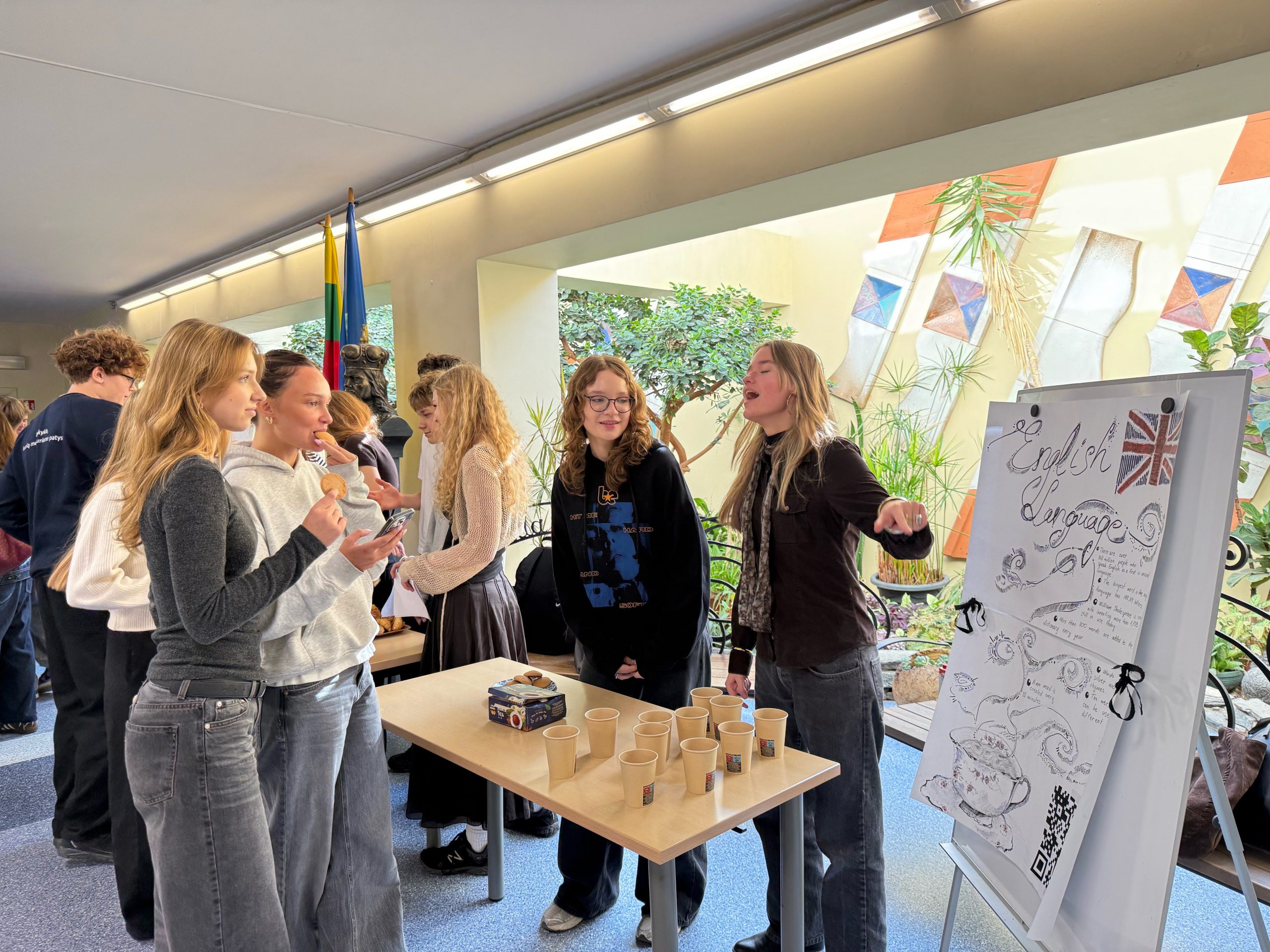 Prie stendų aktyviai lankėsi tiek mokiniai, tiek mokytojai – kiekvienas galėjo atrasti kažką naujo, pasitikrinti žinias ar tiesiog pabendrauti kita (kartais ir visai nežinoma) kalba. Dėkojame visiems dalyviams!