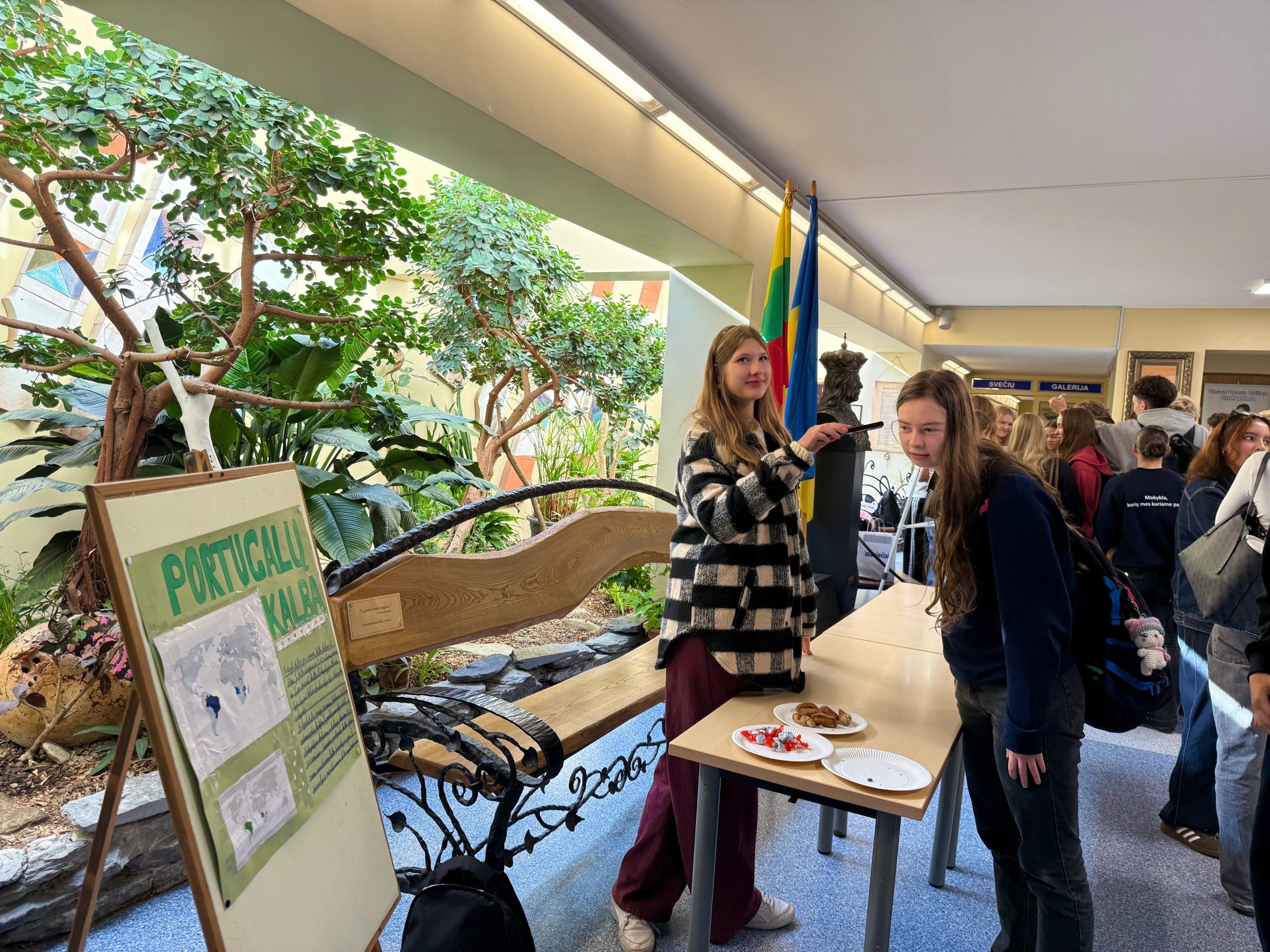 Rugsėjo 26-ąją mūsų gimnazijoje buvo švenčiama Europos kalbų diena, o šventinę nuotaiką vainikavo per ilgąsias pertraukas vykusi Europos kalbų mugė, užpildžiusi mokyklos erdves ne tik spalvomis, garsais ir daugiakalbiu šurmuliu, bet ir skanių kepinių kvapais.