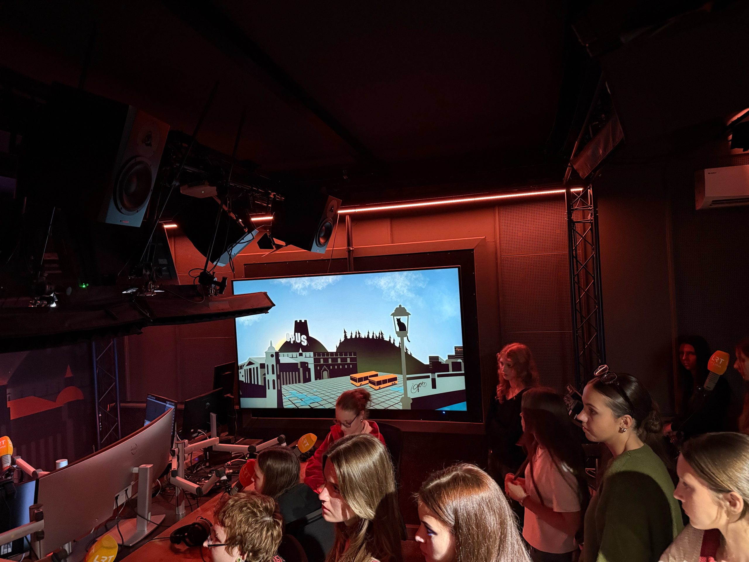 II b kl. komunikacijos bei anglų k. profilio mokiniai dalyvavo tiksliniame profesiniame pažintiniame vizite Lietuvos radijuje bei televizijoje, čia jie turėjo galimybę iš arti susipažinti su darbu eteryje bei už jo ribų.