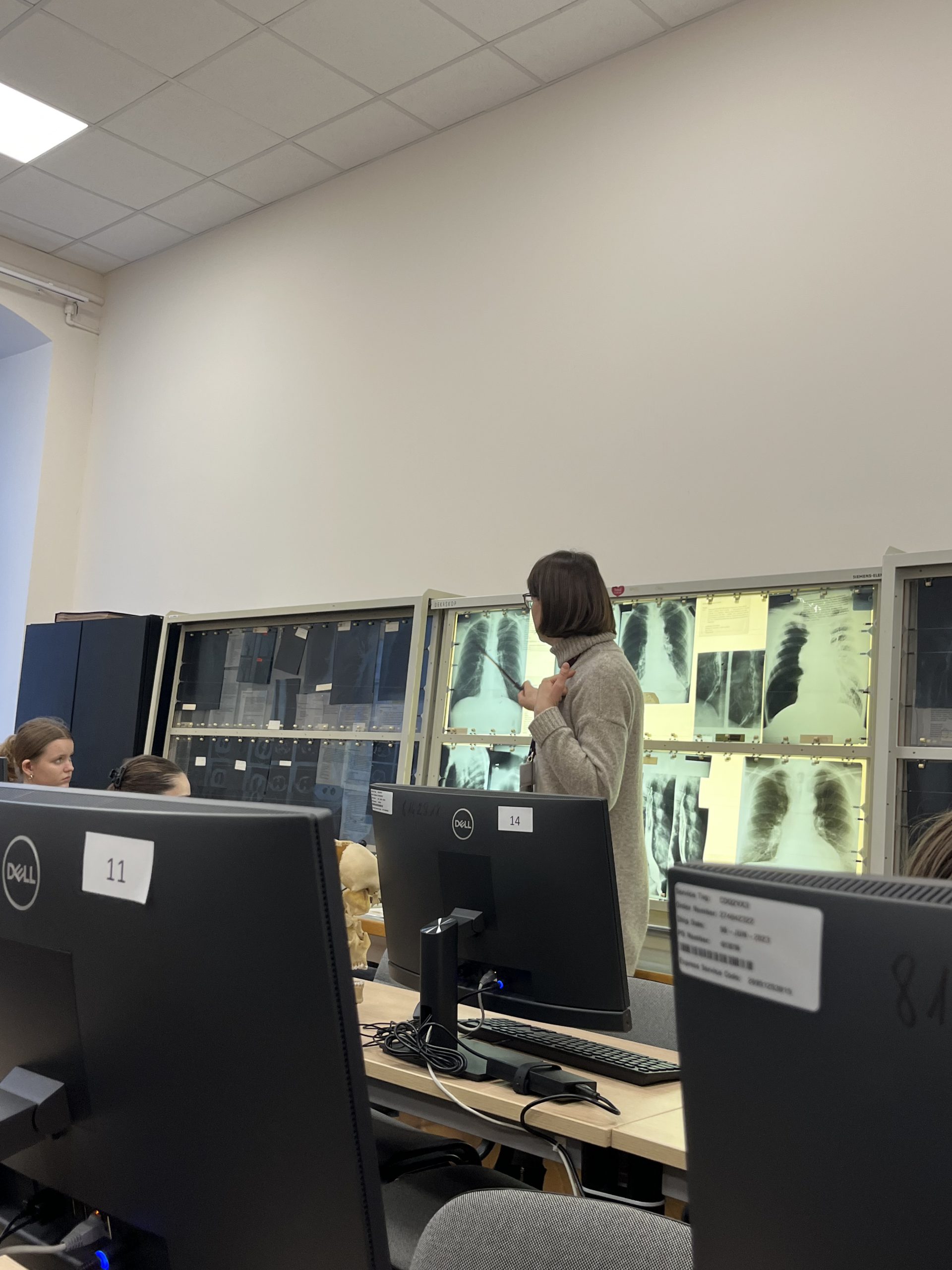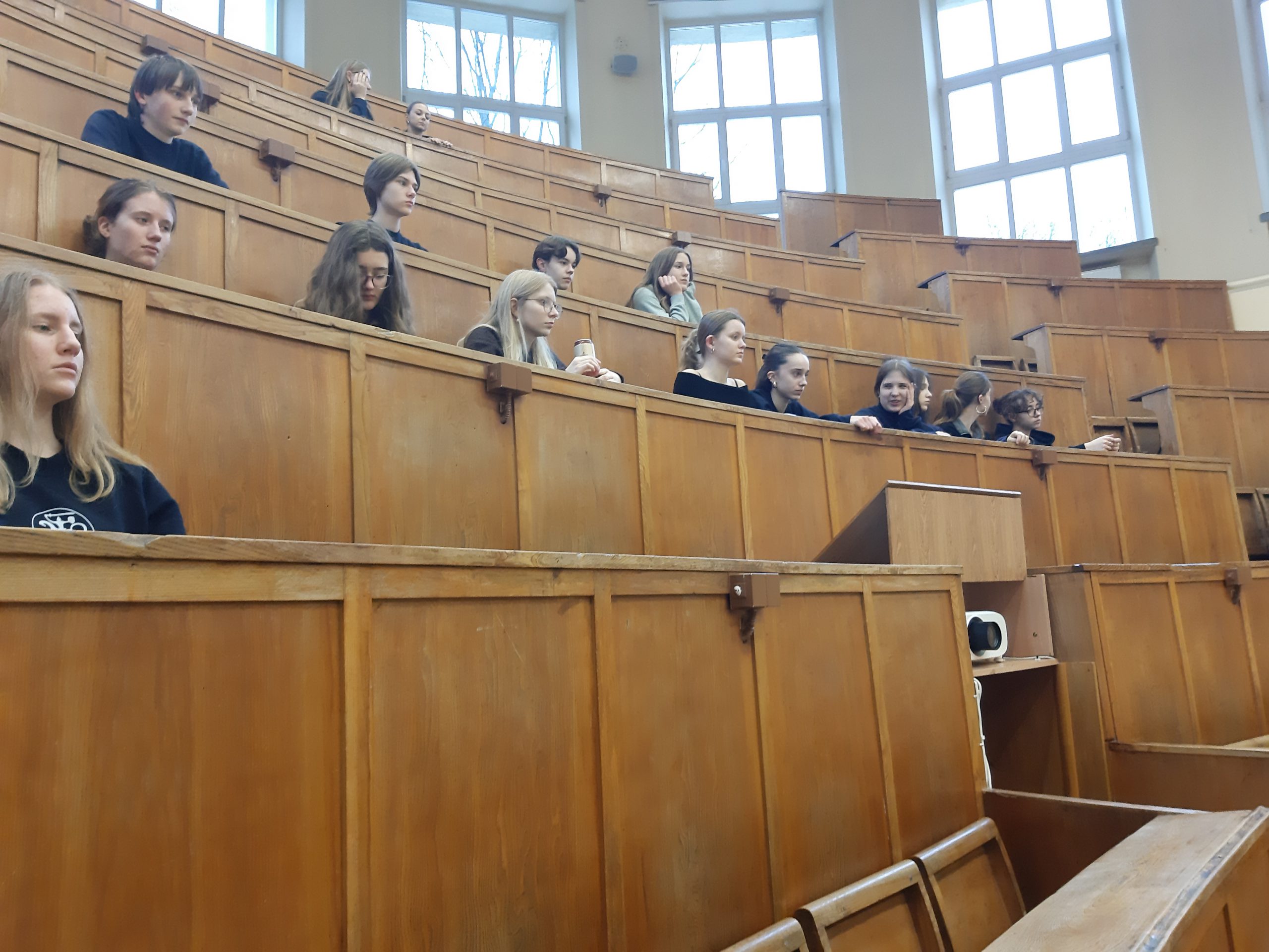 I c klasės medicinos profilio moksleiviai lankėsi VU Medicinos fakultete. Ekskursijos vadovė visus pakvietė į pačią seniausią fakulteto didžiąją amfiteatrinę auditoriją, supažindino su Vilniaus universiteto istorija. Medicinos muziejuje papasakojo medicinos vystymosi istoriją. Doc. Eglė Marija Jakimavičienė pristatė vieną iš medicinoje naudojamų tyrimo metodų – rentgenografiją, paaiškino, kaip atliekamas šis tyrimas, kaip analizuojami jo rezultatai.