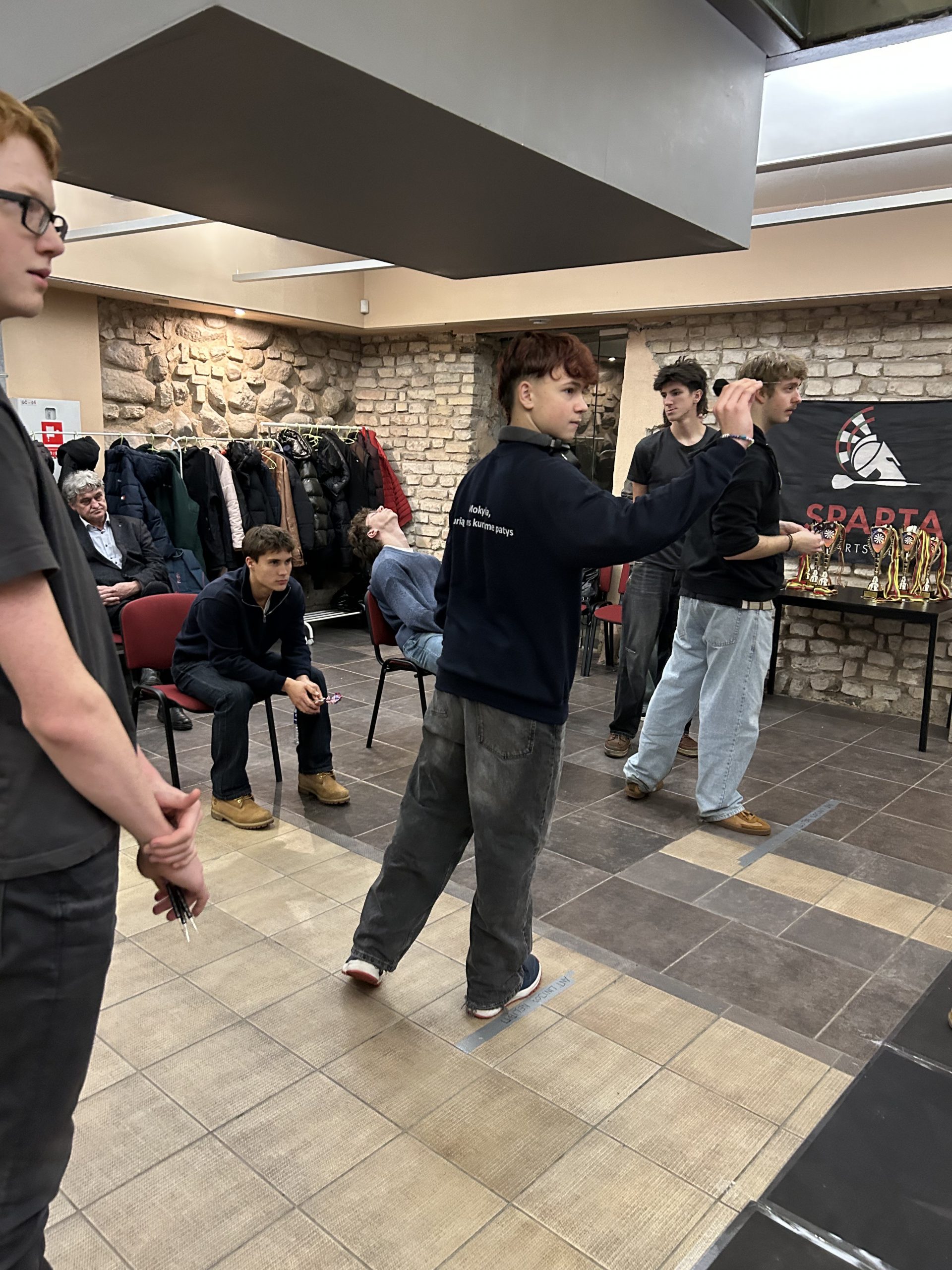 Mūsų gimnazijos II c klasės mokiniai Marius Vielavičius ir Emilis Stalnionis sėkmingai dalyvavo Vilniaus miesto gimnazistų smiginio varžybose. Varžybose rungėsi 8 komandos, suskirstytos į pogrupius po 4.
