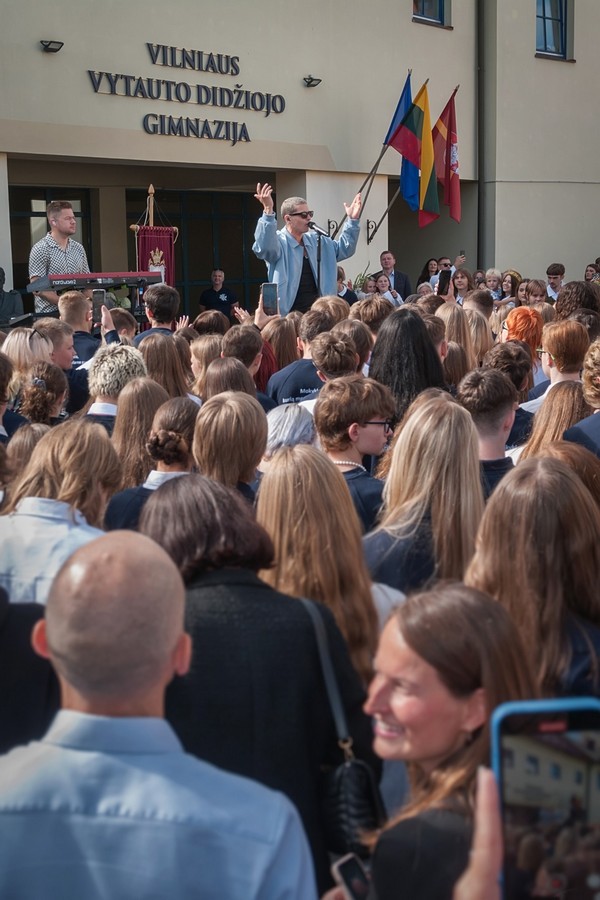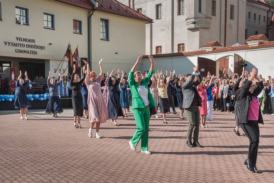 Svarbiausia, kad gimnazija nuo šio rudens norinčiuosius pakvietė į Tarptautinio bakalaureato Diplomo programą. Be to, jau tradicija tapo gimnazijos mokytojų ir mokinių flashmob‘o pasirodymai. O kokia šventė be koncerto? Mokslo metų pradžios šventėje savo talentais švytėjo Vilniaus Vytauto Didžiojo gimnazijos dainuojantys ir grojantys mokiniai bei Lietuvos muzikos pasaulyje garsus atlikėjas – savo pasirodymą mūsų gimnazijai skyrė Donatas Montvydas.