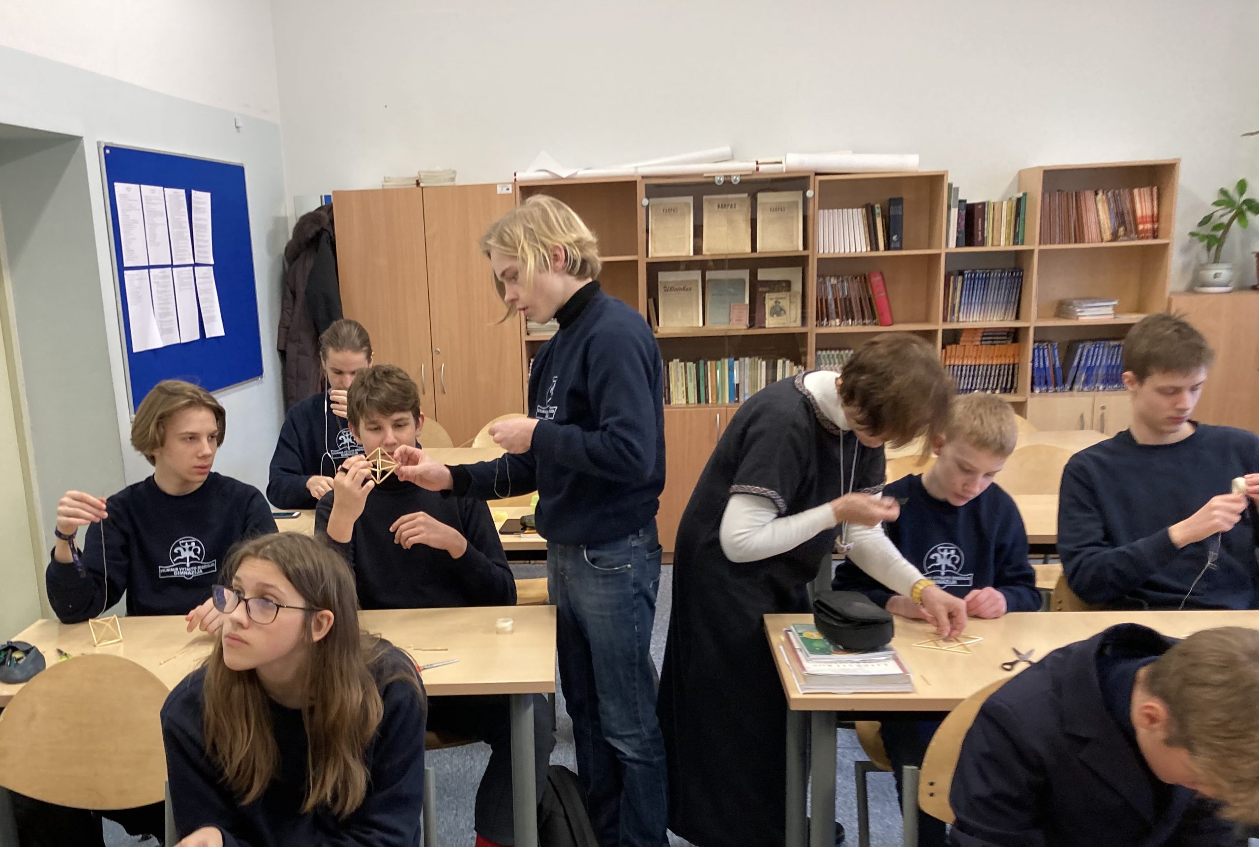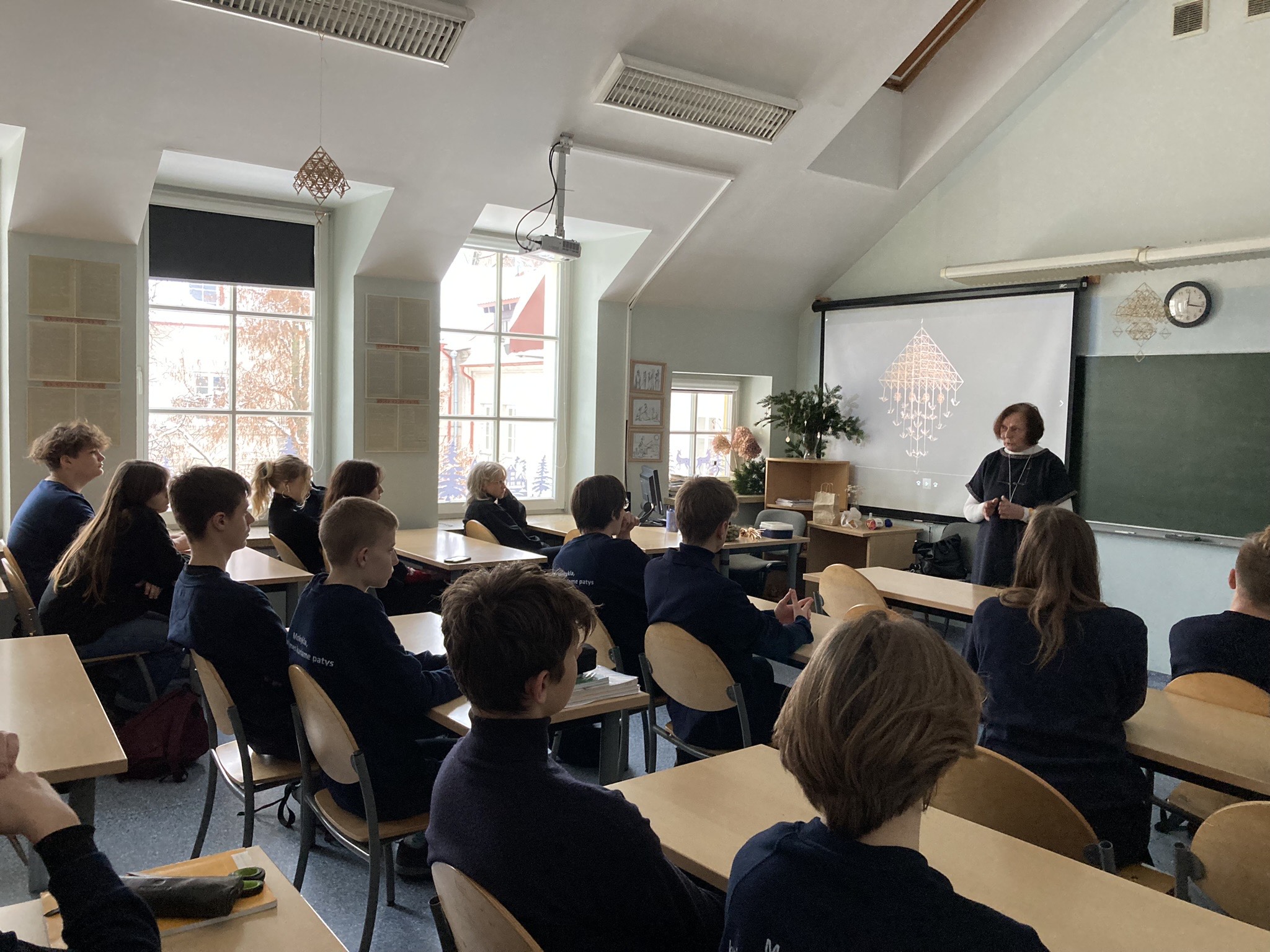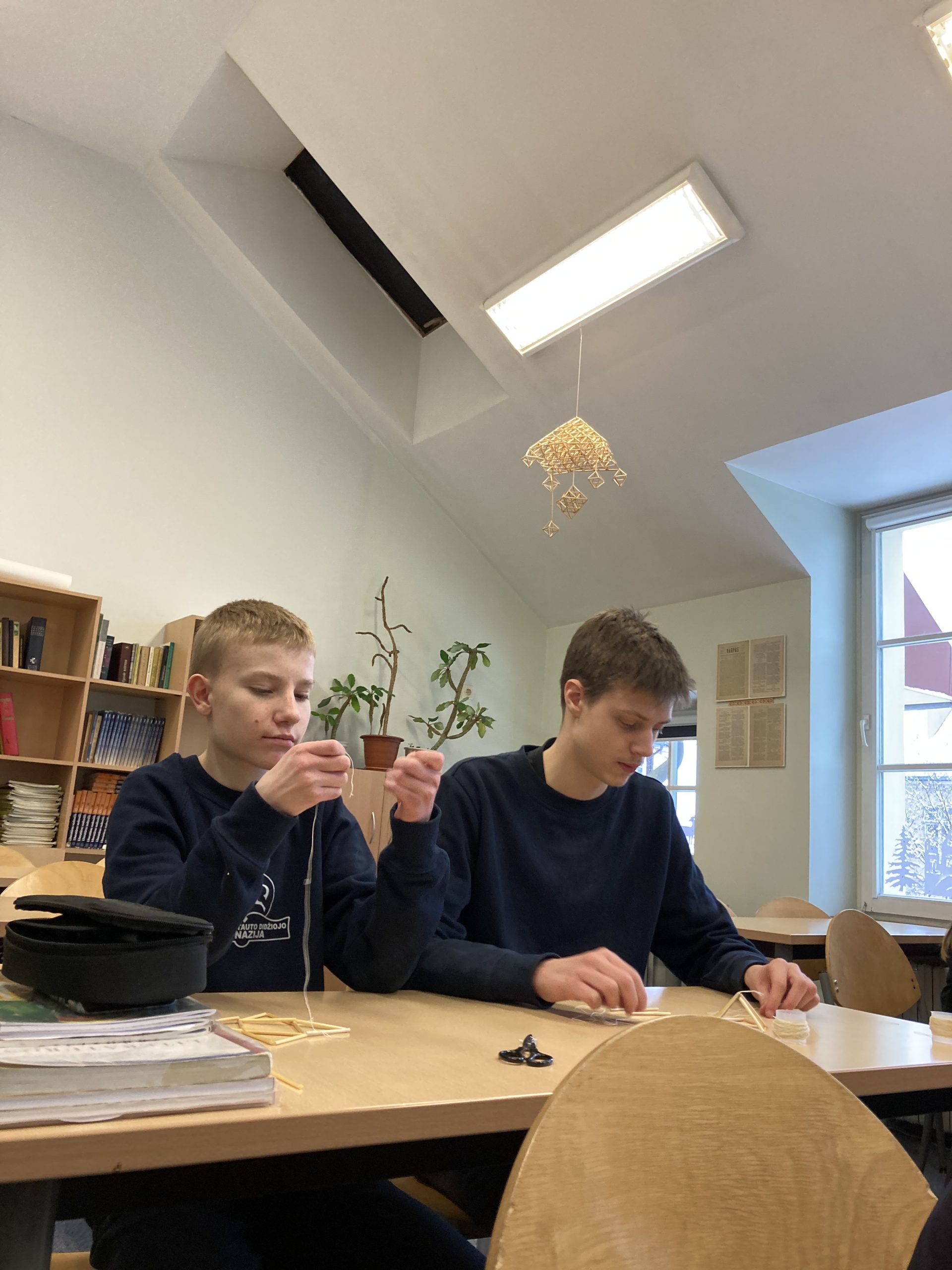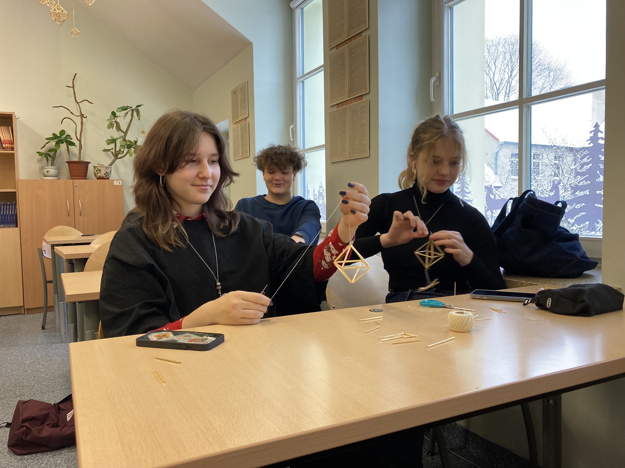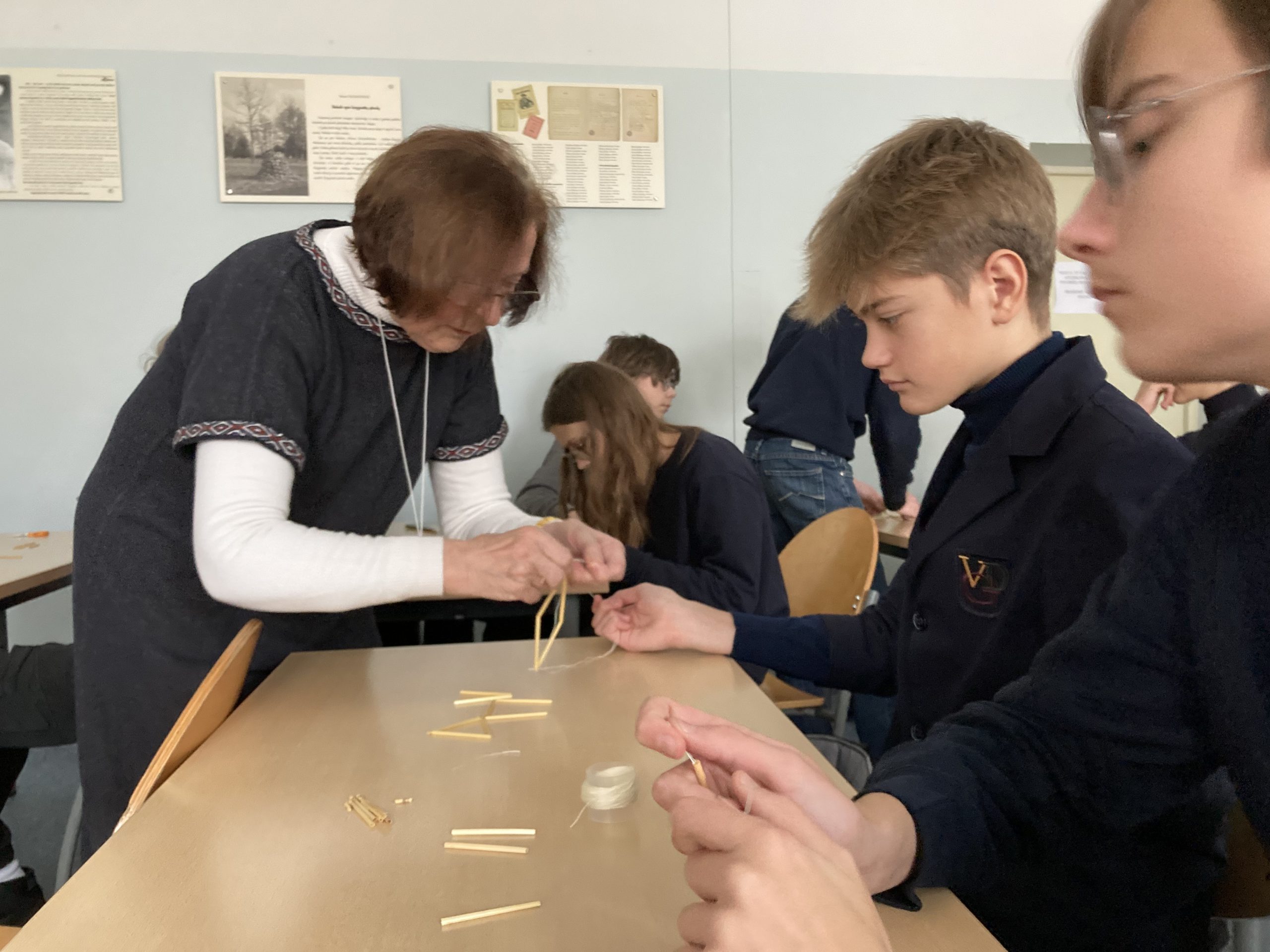 Nepaprastai džiugu ir vertinga, kai mūsų gimnazistų šeimos nariai, įsitraukdami į ugdymą, ne tik supažindina jaunus žmones su tautiniu paveldu, bet ir perduoda tradicijas, paskatina jomis domėtis plačiau. Netradicinėje lietuvių kalbos ir literatūros pamokoje viešėjo asociacijos „Dangaus sodai“ vadovė Marija Liugienė, mūsų mokinio močiutė, jaunuolius nustebinusi įteikdama patirties dovaną – tautodailininkė perdavė šiaudinių sodų pynimo tradicijas. O jos reikšmingos – Lietuva pateikė šiaudinių sodų tradicijos nominacinę paraišką UNESCO Reprezentatyviajam žmonijos nematerialaus kultūros paveldo sąrašui. Mokiniai užburti klausėsi M. Liugienės pasakojimo apie vieną iš tautodailės rūšių, kurioje užkoduota visa senovės baltų pasaulėjauta, vėliau karpė, rišo ir stebėjo, kaip užburiančiai sūpuojasi jų pačių suverti sodai. Svarbiausia tai, kad buvo juntamas tylus jaunuolių pasididžiavimas ne tik pasiektu rezultatu, bet ir tuo, kad jie yra šio unikalaus meno paveldėtojai.