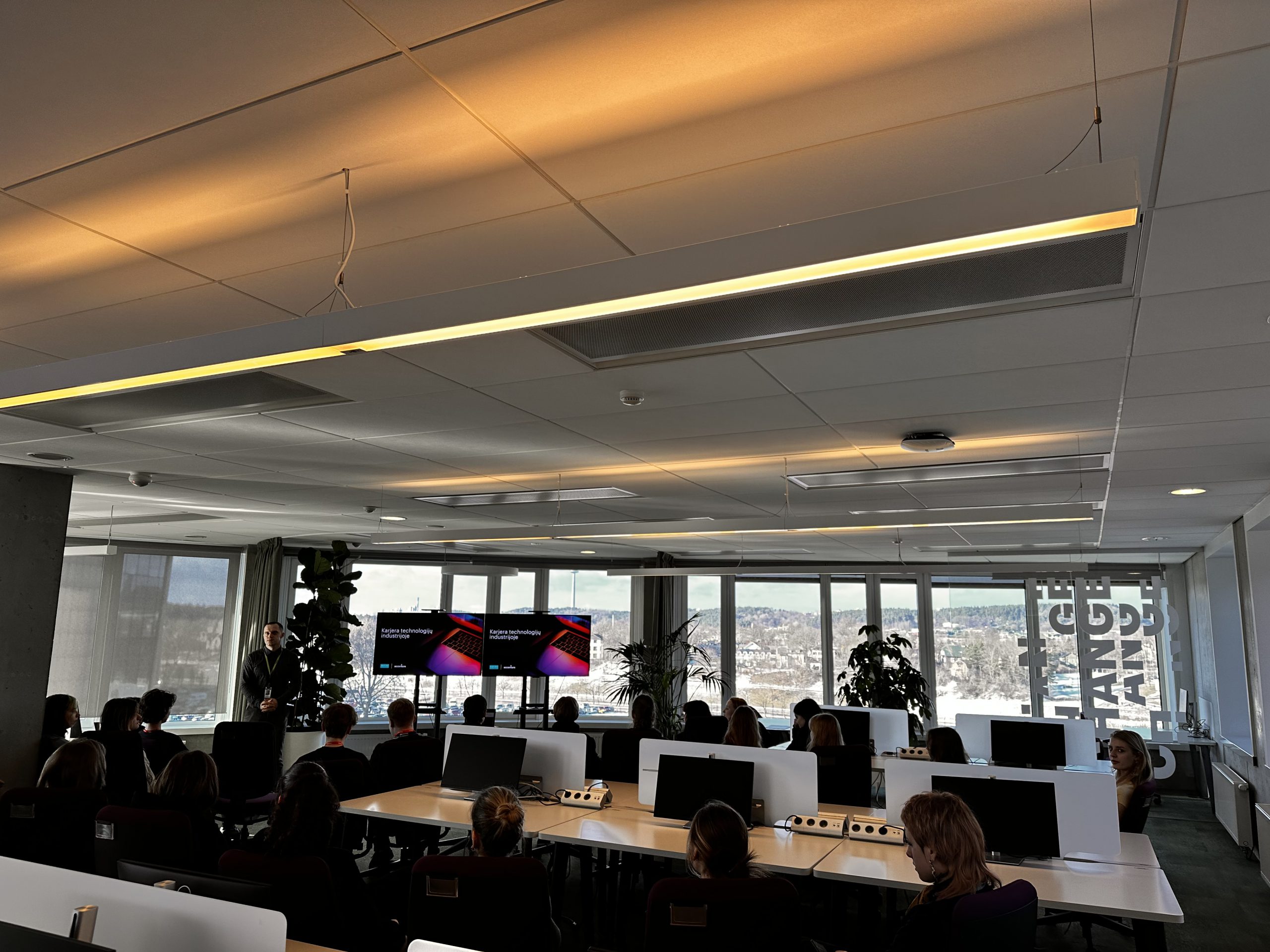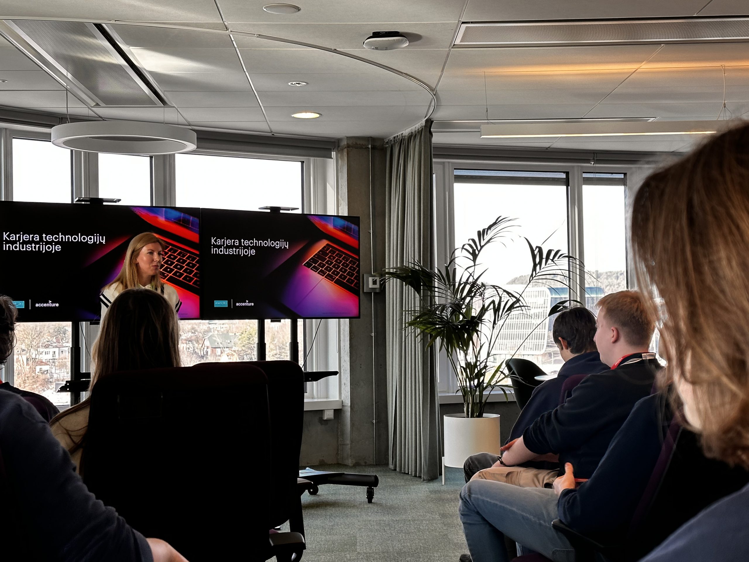 Vasario 8 dieną II a klasės mokiniai informacinių technologijų pamoką praleido netradicinėje erdvėje. Mokiniai kartu su klasės vadove bei karjeros specialiste lankėsi vienoje didžiausių IT kompanijų pasaulyje „Accenture“, dirbančioje su 96 įmonėmis iš „Fortune Global 100“ didžiausių pasaulio bendrovių sąrašo. Įmonės darbuotojai, IT profesionalai, papasakojo, kaip kuriamas pasaulinio lygio skaitmeninis turinys, kiek skirtingų specializacijų darbuotojų dirba prie didelių IT platformų kūrimo, supažindino mokinius su plačiomis karjeros galimybėmis IT srityje bei davė naudingų patarimų būsimiems studentams.