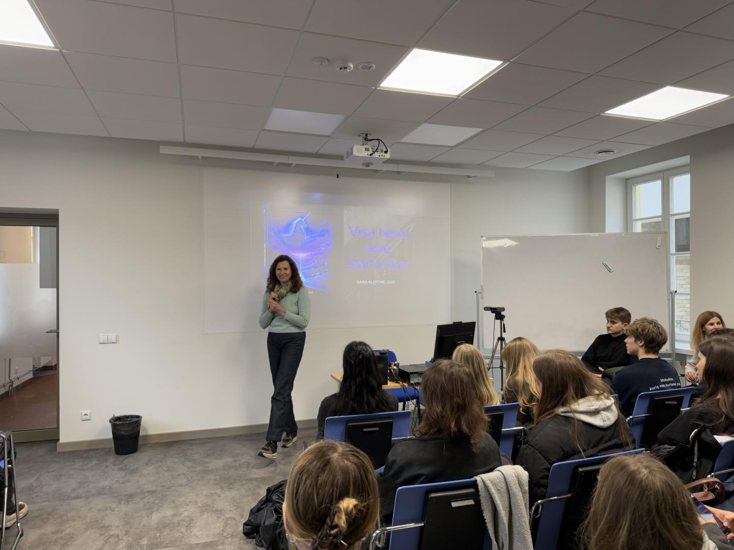 Mokiniai turėjo galimybę užduoti klausimus ir diskutuoti apie tai, kokių įgūdžių reikia norint sukurti sėkmingą startuolį. Paskaitos pabaigoje mokiniai dalyvavo smagioje žinių patikrinimo viktorinoje.