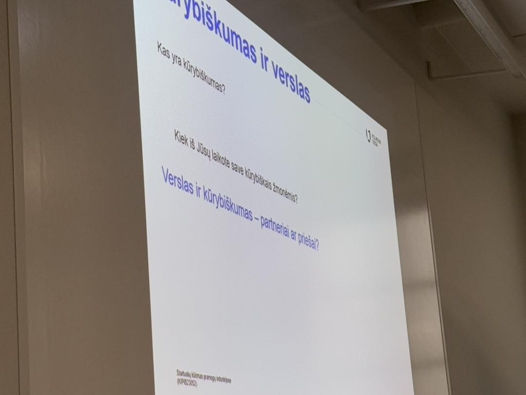 Kovo 24 d. Komunikacijos modulio ir devintų bei dešimtų klasių mokiniai lankėsi Vilnius Tech Kūrybinių industrijų fakultete. Čia jie dalyvavo Dainos Kleponės – asmeninio efektyvumo, lyderystės ir organizacijų strateginio valdymo konsultantės, tyrėjos ir rašytojos – paskaitoje STARTUOLIAI, VIENARAGIAI IR KITI VERSLO EKOSISTEMOS „GYVENTOJAI“.