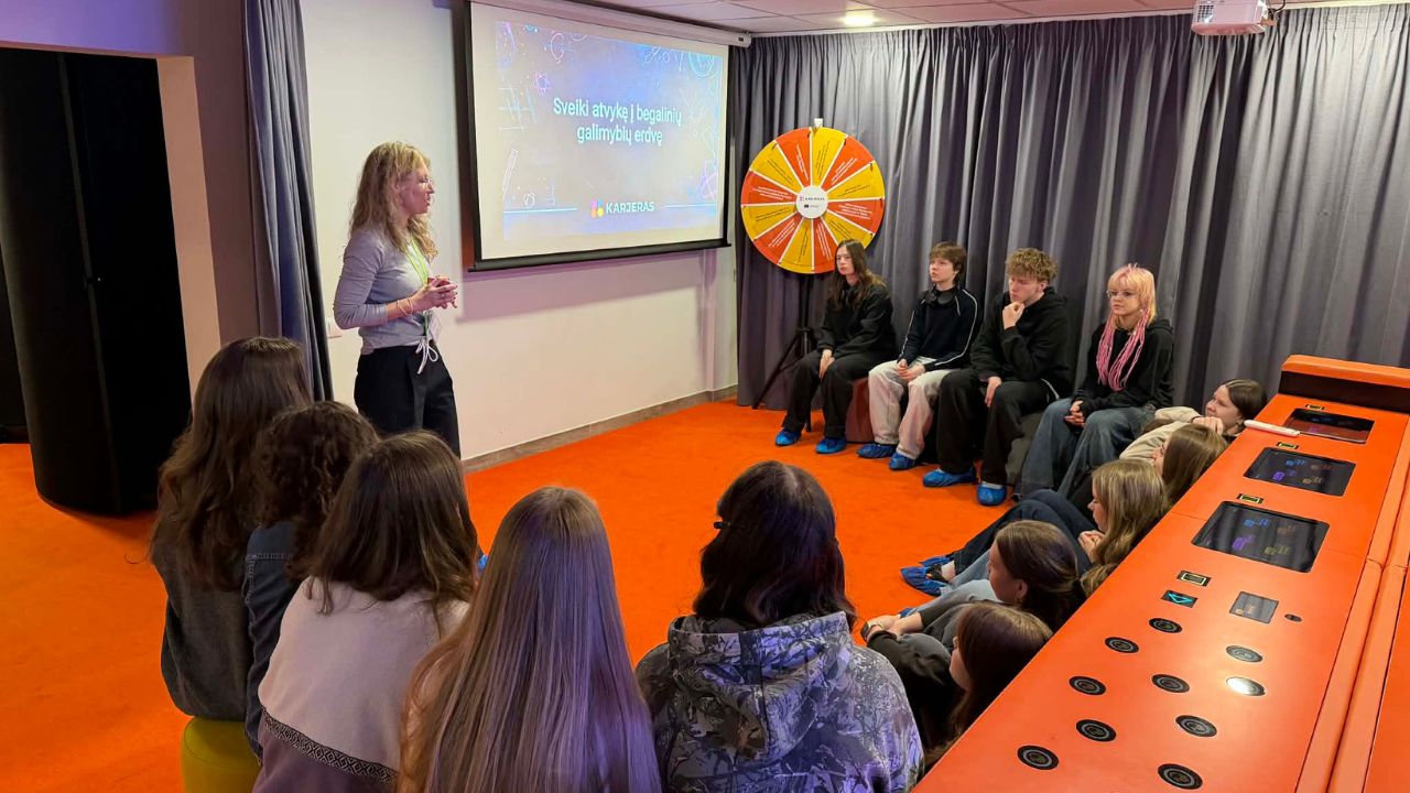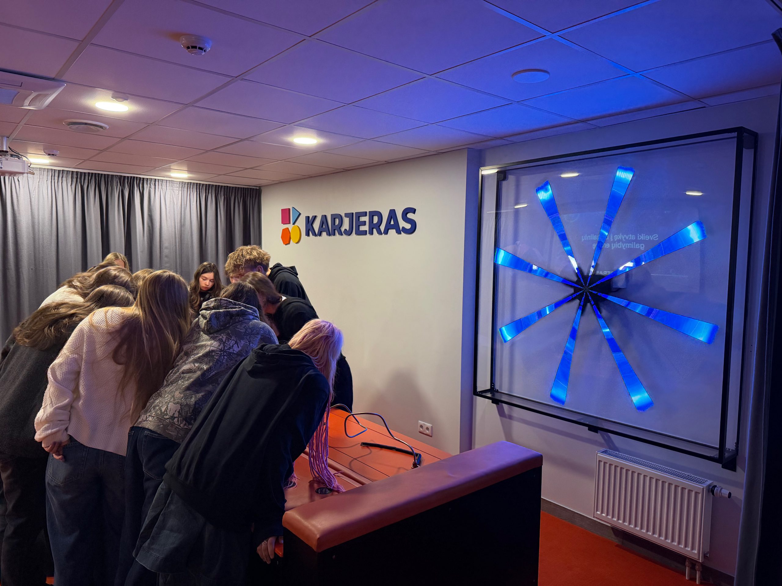 II klasės moksleivių grupė kartu su karjeros specialiste bei klasės vadove lankėsi Užimtumo tarnybos interaktyvioje „Karjeras“ erdvėje. Vizito metu mokiniai susipažino su modernia aplinka, skirta profesiniam orientavimui, bei išbandė Hollando profesinio pasirinkimo testą. Ši patirtis padėjo geriau pažinti savo pomėgius, gebėjimus ir galimas karjeros kryptis.
