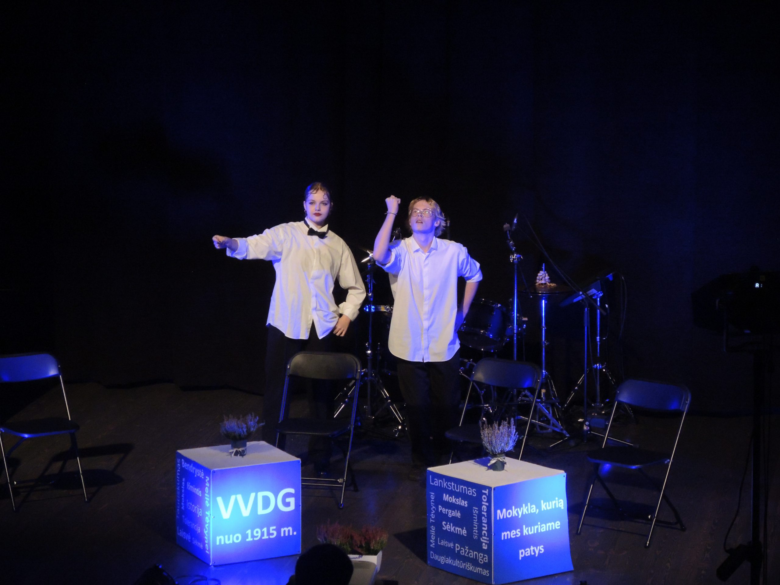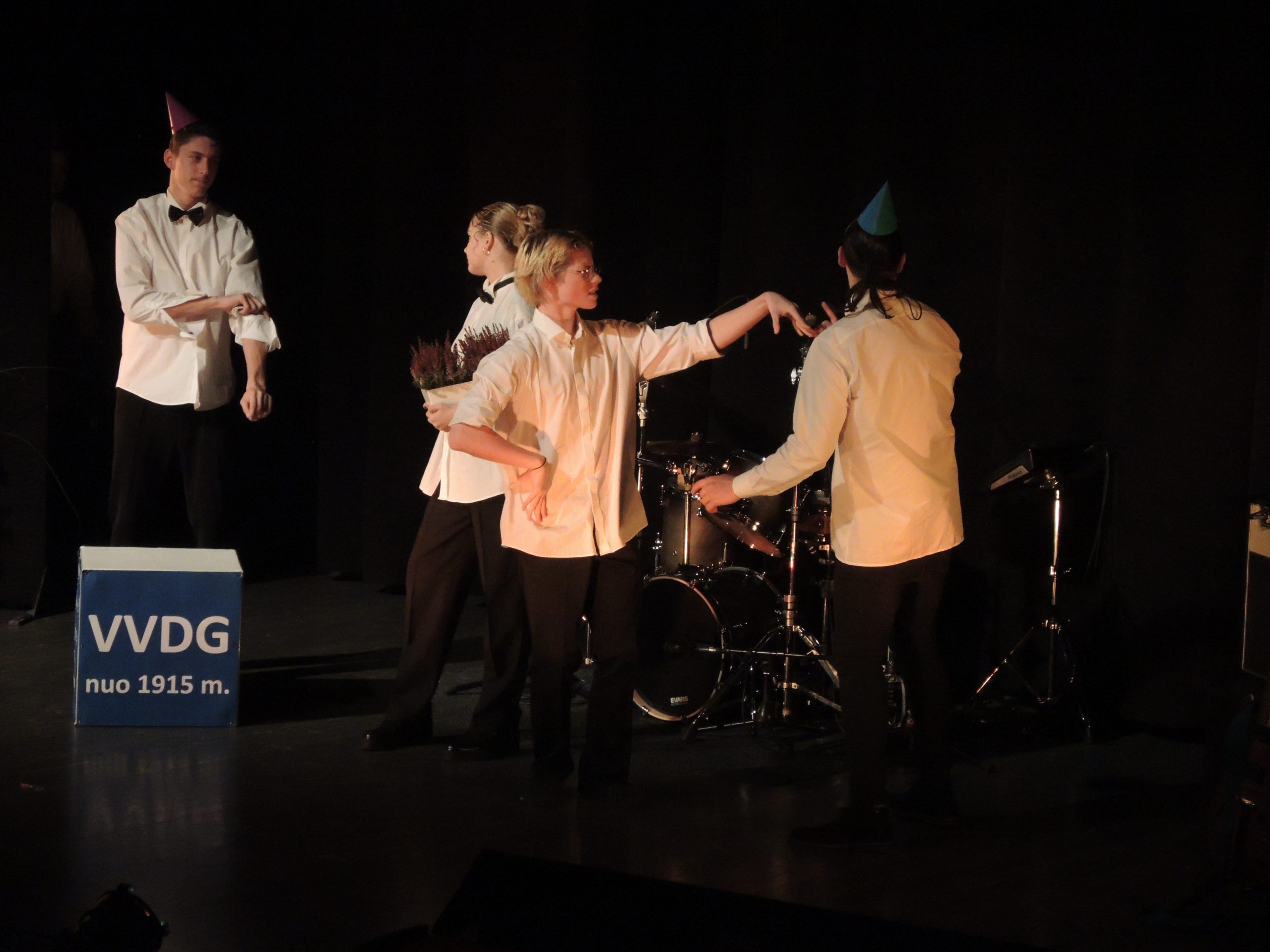 Pamokų metu vyravusią šventinę nuotaiką kurstė mokytojų žodžiai ir atsiminimai, susiję su darbu Vilniaus Vytauto Didžiojo gimnazijoje. Šventės kulminacija – po pietų prasidėjęs gimtadienio minėjimas. Aktų salės kėdes užpildė mokiniai, mokytojai, svečiai ir alumnai. Nutilus šurmuliui ir užgesus šviesoms, vedėjai pristatė žiūrovus nustebinusią programą ir svarbiausią gimtadienio staigmeną – garbingoje vietoje įsitaisiusį tortą. Renginys atidarytas skambant talentingų gimnazijos smuikininkių muzikai, po kurios išgirdome įkvepiančią bei šmaikščią direktoriaus R. Komičiaus kalbą. Direktorius pristatė gimnazijos gyvavimo metu pasirodžiusius leidinius: mokytojų atsiminimus, ankstesnių direktorių sudarytus įvairaus pobūdžio dokumentus. Visiems drauge prisiminus gimnazijos istoriją, išgirdome dar visai neseniai mokykloje besisukiojusių mokinių ir mokytojų mintis. Į diskusiją buvo pakviesta buvusi mokyklos direktorė B. Puchovičienė, ilgą laiką gimnazijoje dirbusi istorijos mokytoja J. Litvinaitė bei buvusi mokinių tarybos prezidentė. Jaukus ir kai kuriuos susigraudinti privertęs pokalbis baigėsi gražiomis mintimis apie mūsų bendruomenę ir apibendrinimu – turime ir toliau mylėti bei branginti tai, ką turime.