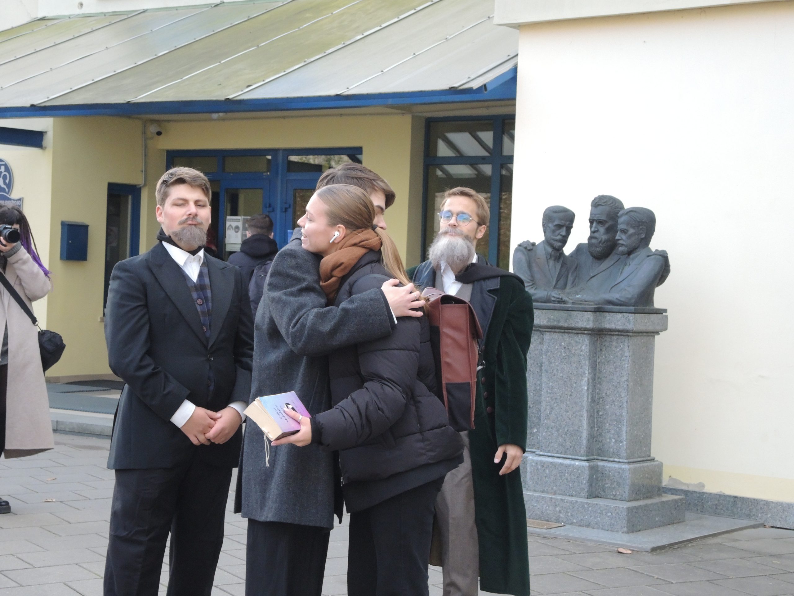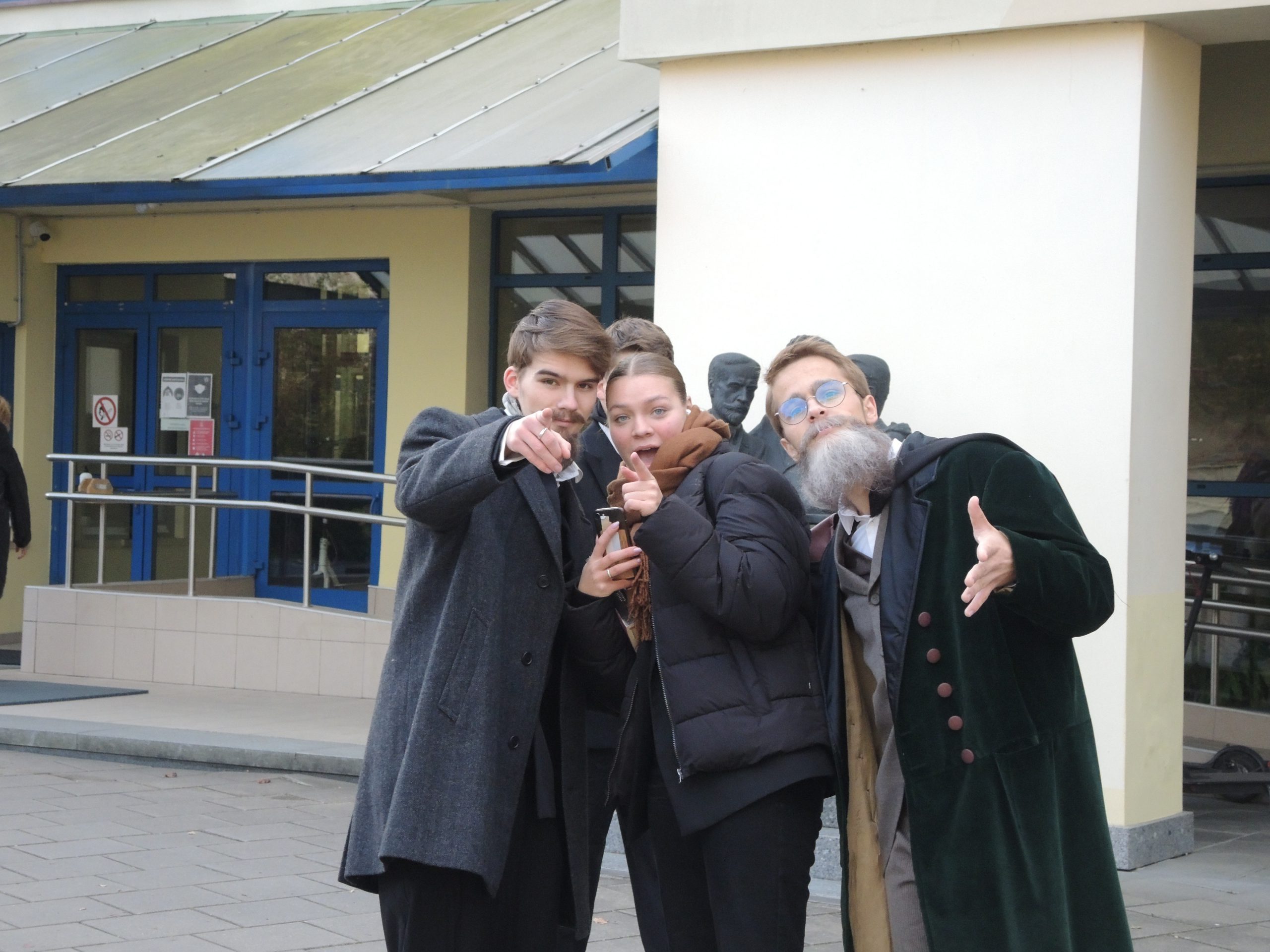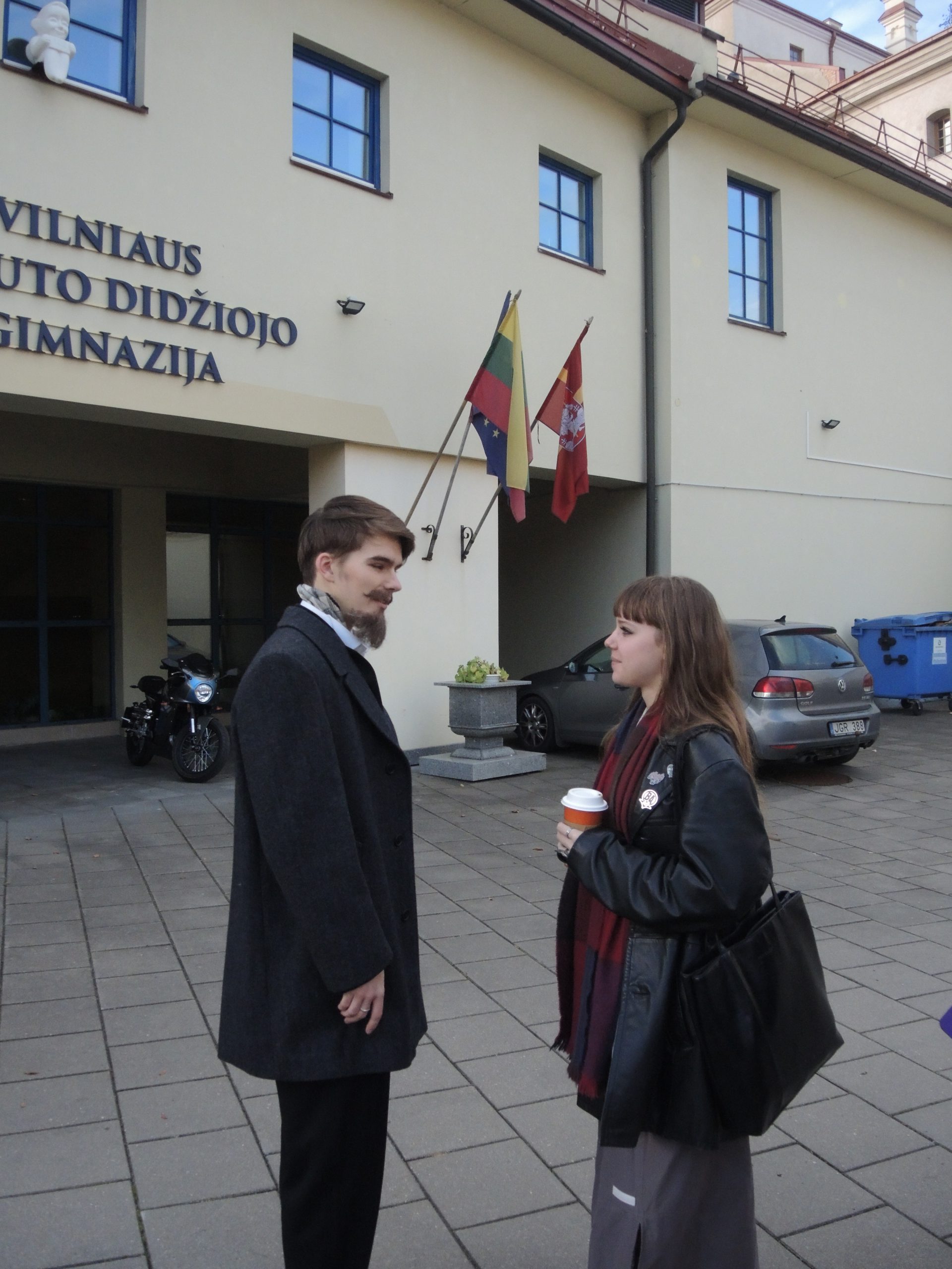 Šiemet Vilniaus Vytauto Didžiojo gimnazija švenčia 107-ąjį gimtadienį. Pirmoji lietuvių gimnazija įkurta 1915 m. spalio 9 dieną trijų įtakingų istorinių asmenybių. Už šią švietimo sklaidą sunkiu mūsų šaliai laikotarpiu turime būti dėkingi J. Basanavičiui, M. Biržiškai ir P. Gaidelioniui. Būtent šie trys vyrai ankstų gimtadienio rytą pasitiko gimnazijos bendruomenę, lankėsi pamokose, kalbino bei uždavė istoriją prisiminti skatinusių klausimų.