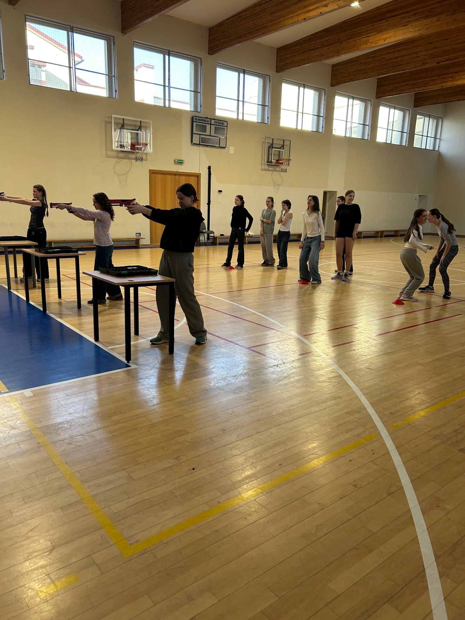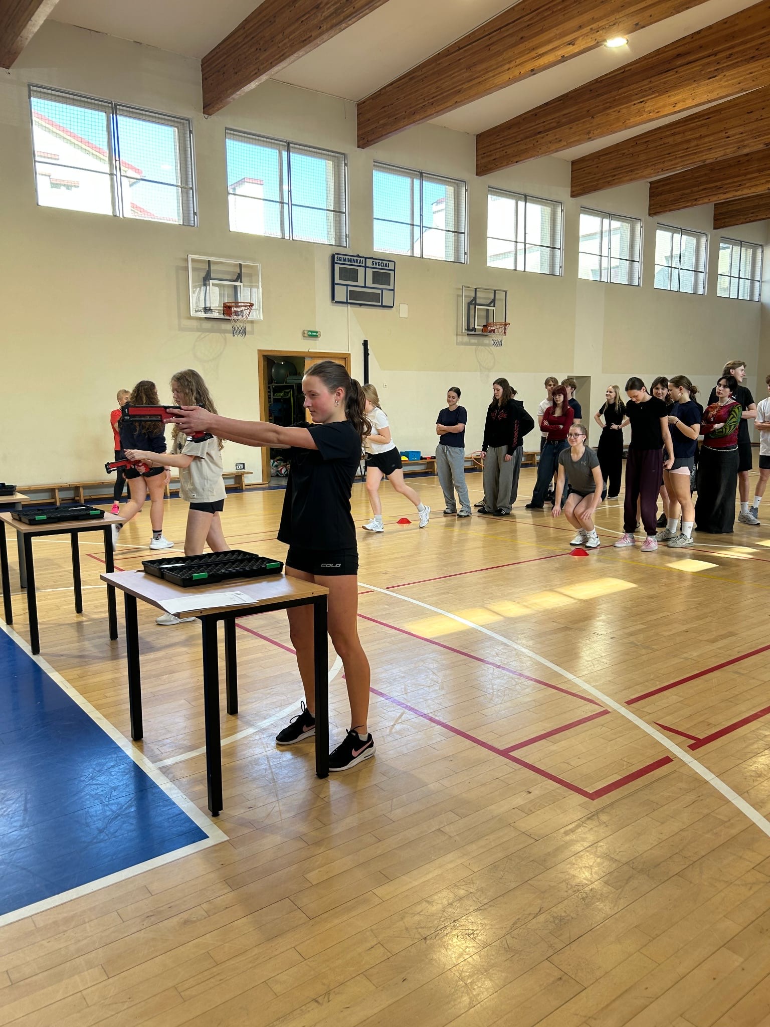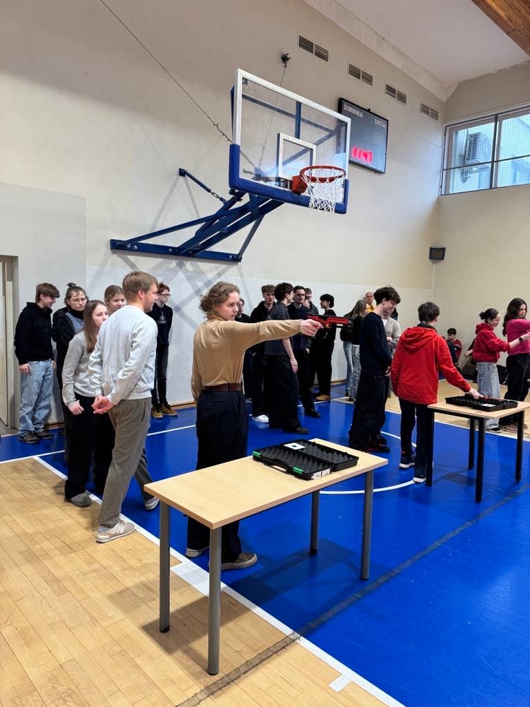 2025-02-07 gimnazijoje vyko pirmasis šiuolaikinės penkiakovės projekto varžybų etapas, kuriame mokiniai varžėsi šaudydami iš lazerinio pistoleto. Dalyviai turėjo kuo greičiau pataikyti į taikinį, esantį 5 metrų atstumu, įrodyti savo taiklumą bei greitį. Varžybose dalyvavo I e, I c klasės mokiniai bei mokinių komanda, besiruošianti ,,Draugystės taurės“ spartakiadai, projekto ,,Ugnies linija“ dalyviai.
