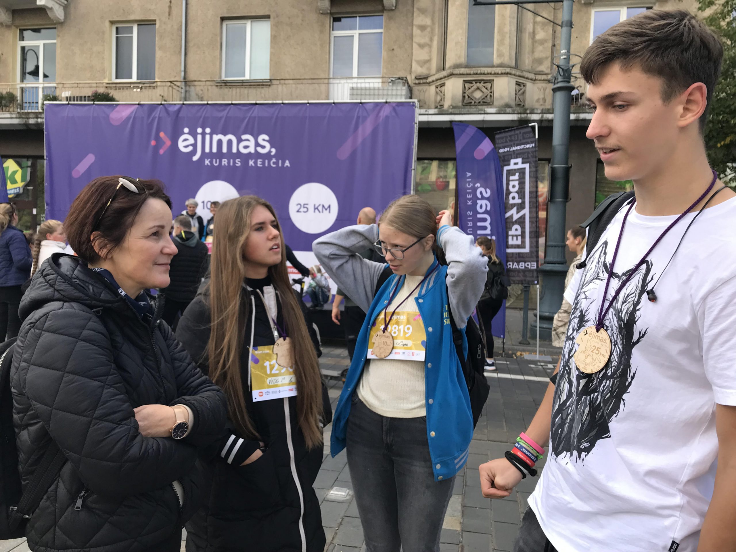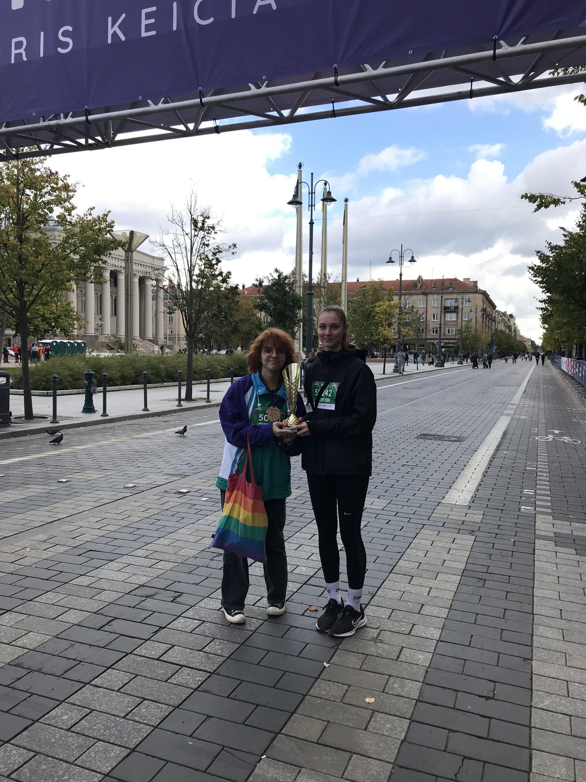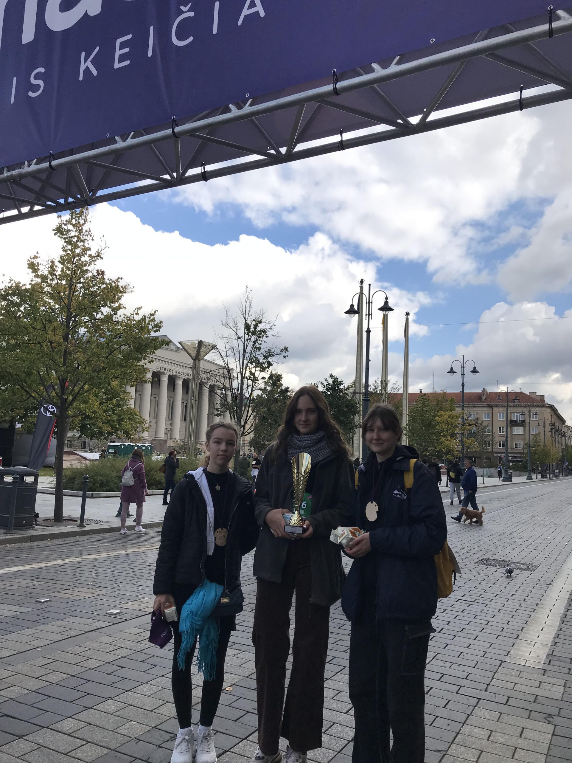 Vaikščiojimo renginyje grožėjomės rudenėjančiu Vilniumi, būdami drauge gryname ore patyrėme džiugių emocijų, ilsėjomės tam skirtose stotelėse, o įveikę trasą su puikia nuotaika grįžome į namus.