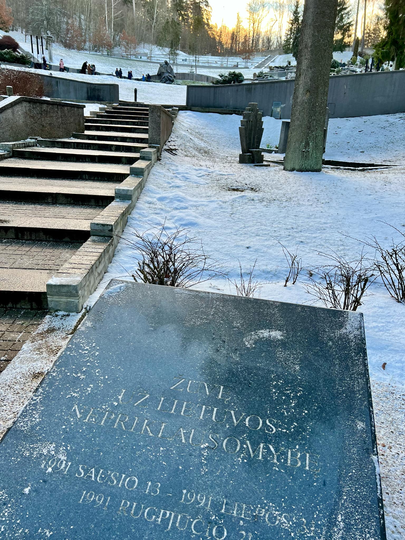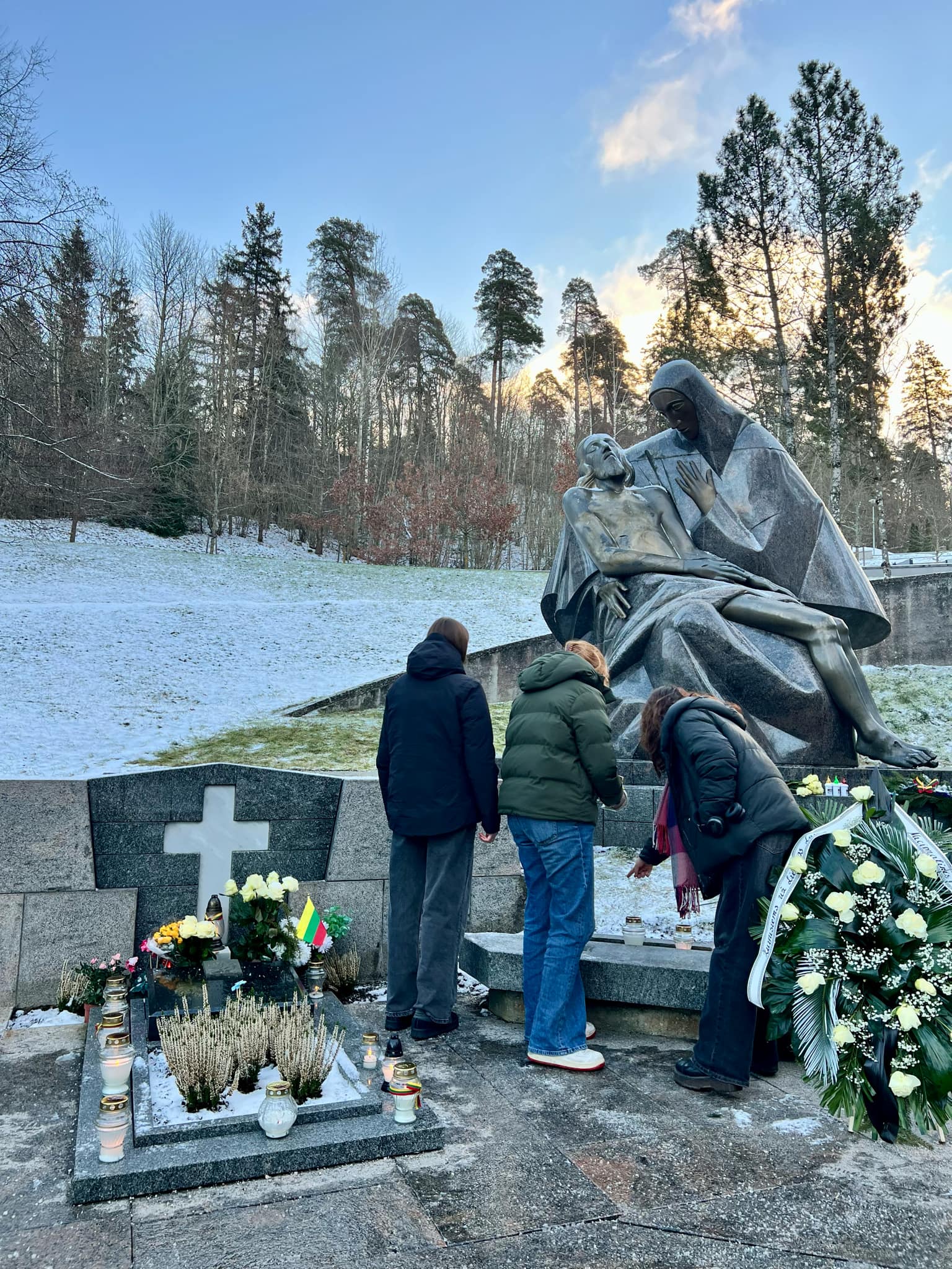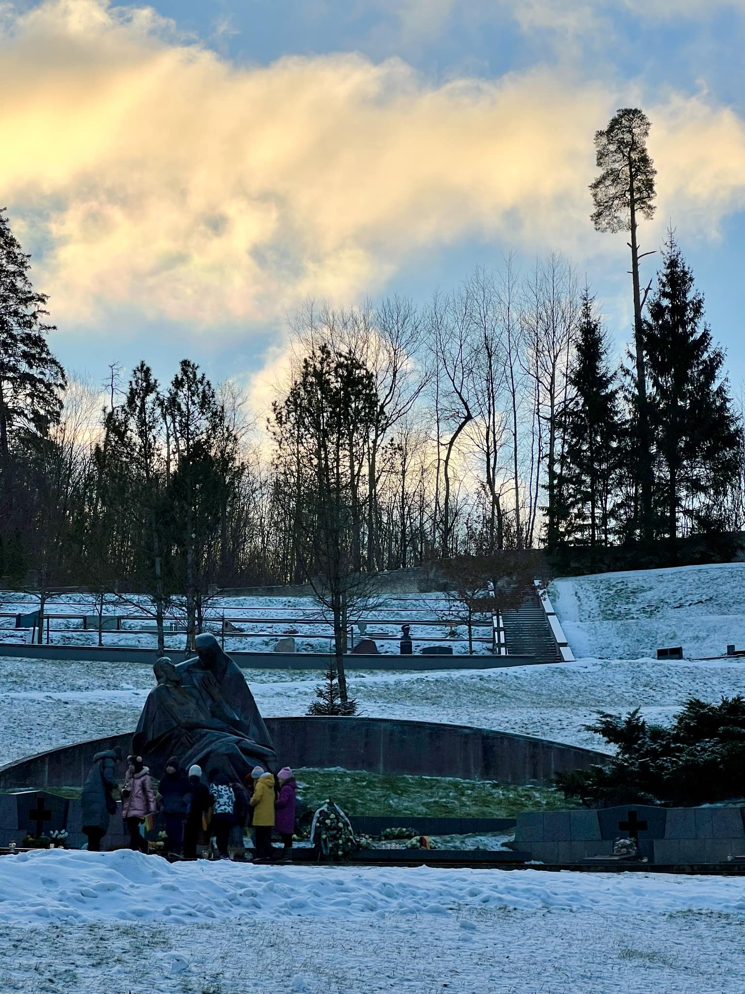 Vytauto Didžiojo gimnazijos languose degant atminimo žvakutėms, mokyklos pirmokės pagerbė ir laisvės gynėjų amžino poilsio vietą Antakalnio kapinėse.