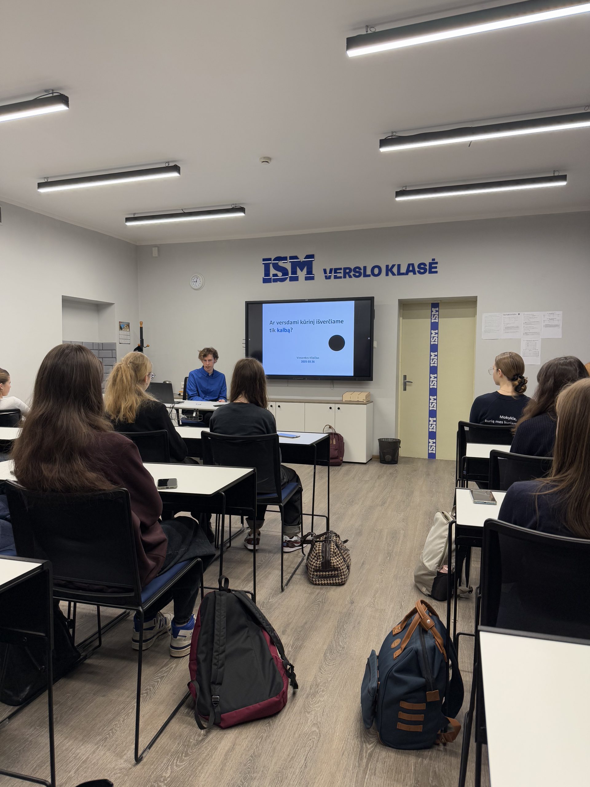 Buvo įdomu išgirsti kaip mąsto vertėjai ir kiek daug dalykų turi susieti, kad gerai išverstų tekstą. Šiandienos paskaita man buvo išskirtinė, kadangi ją vedė vertėjas. Dažniausiai į panašaus tipo renginius ar paskaitas, susijusias su tokio tipo dalykais, kaip vertimas, nevaikštau, kadangi nesieju savo ateities su socialiniais mokslais. Nepaisant to, šį kartą atėjęs nepasigailėjau. Paskaita man pasirodė įtraukianti dėl vedėjo Vincento Klipčiaus gebėjimo komunikuoti su mokiniais bei atskleidimo, kokių reikia žinių, norint susieti daug įvairių dalykų literatūroje, tai ir padaro iš kitos kalbos išverstas knygas įdomias skaityti bei turtingas turinio perteikimo prasme. Taip pat niekada nesusimąsčiau, kaip gali būti sunku išversti elementariausią knygos pavadinimą ir kiek mąstymo bei išprusimo reikia pritaikyti, norint tai atlikti tinkamai.