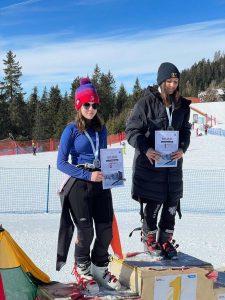 M.: Prieš kelerius metus mama pastebėjo informaciją apie slidinėjimo projektą, vyksiantį Druskininkų ,,Snow arenoje“. Projekte susirinko vaikai iš įvairių kampelių, norintys pramokti slidinėt. Treniruotes mums vedė trenerė iš ,,Snow Bees“ klubo. Man ten taip patiko, jog nusprendžiau, kad noriu dalyvauti pastoviose treniruotėse. Tuomet pati prisijungiau prie ,,Snow Bees“ klubo ir mano pirmos varžybos buvo Liepkalnyje.