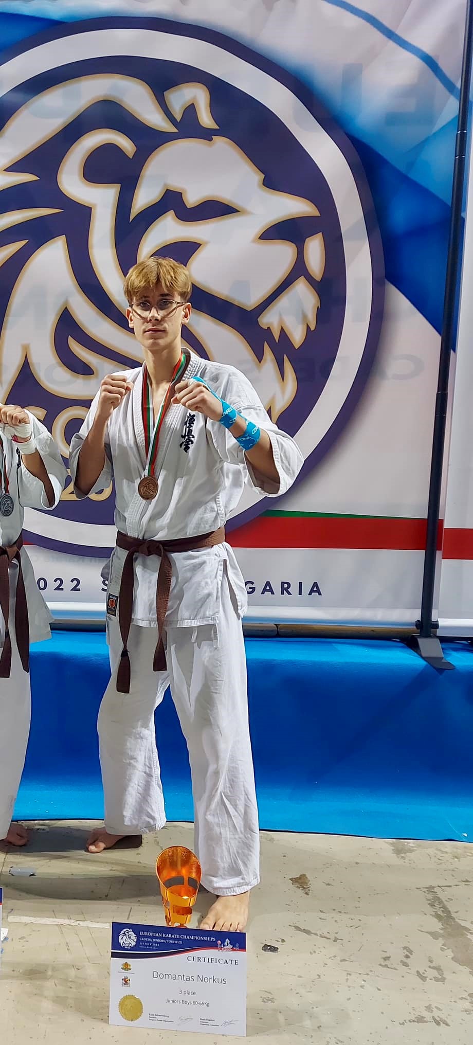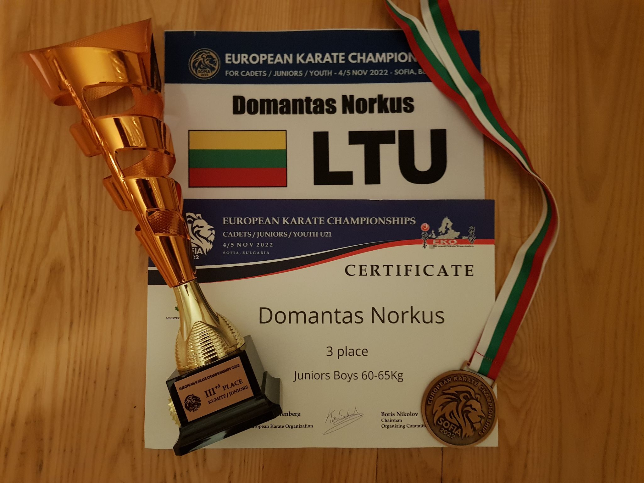 Lapkričio 4-5 d. Bulgarijoje vyko U18 kategorijos Europos kyokushin karatė čempionatas, kuriame dalyvavo ir bronzos medalį laimėjo IIIC klasės mokinys, Domantas Norkus.