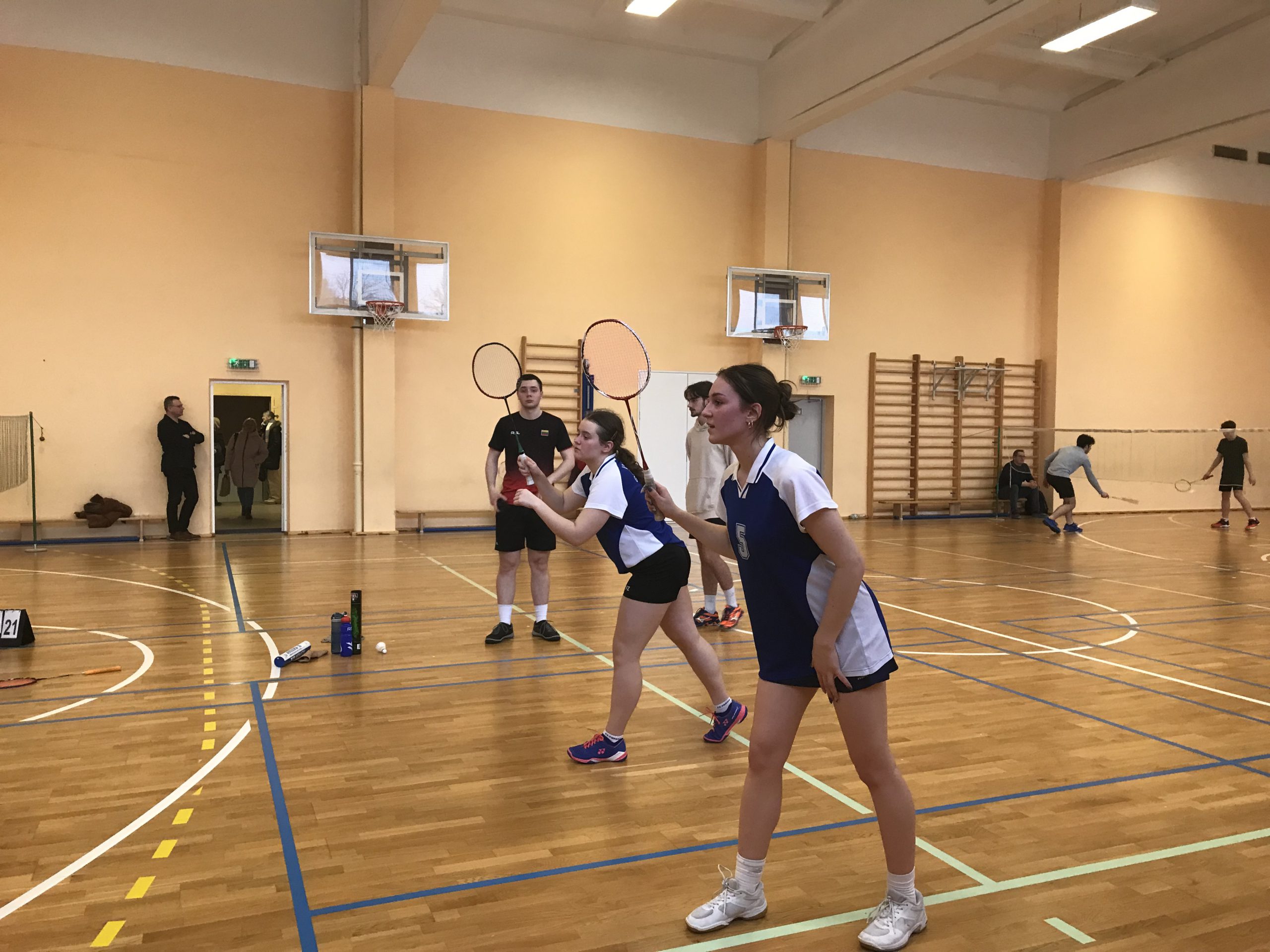 Vasario mėn. 23 dieną mūsų gimnazijos merginų ir vaikinų badmintono komandos dalyvavo Vilniaus miesto mokyklų žaidynių badmintono varžybose. Į Vilniaus A. Puškino gimnazijos sporto salę atvyko 15 merginų ir 11 vaikinų komandų.