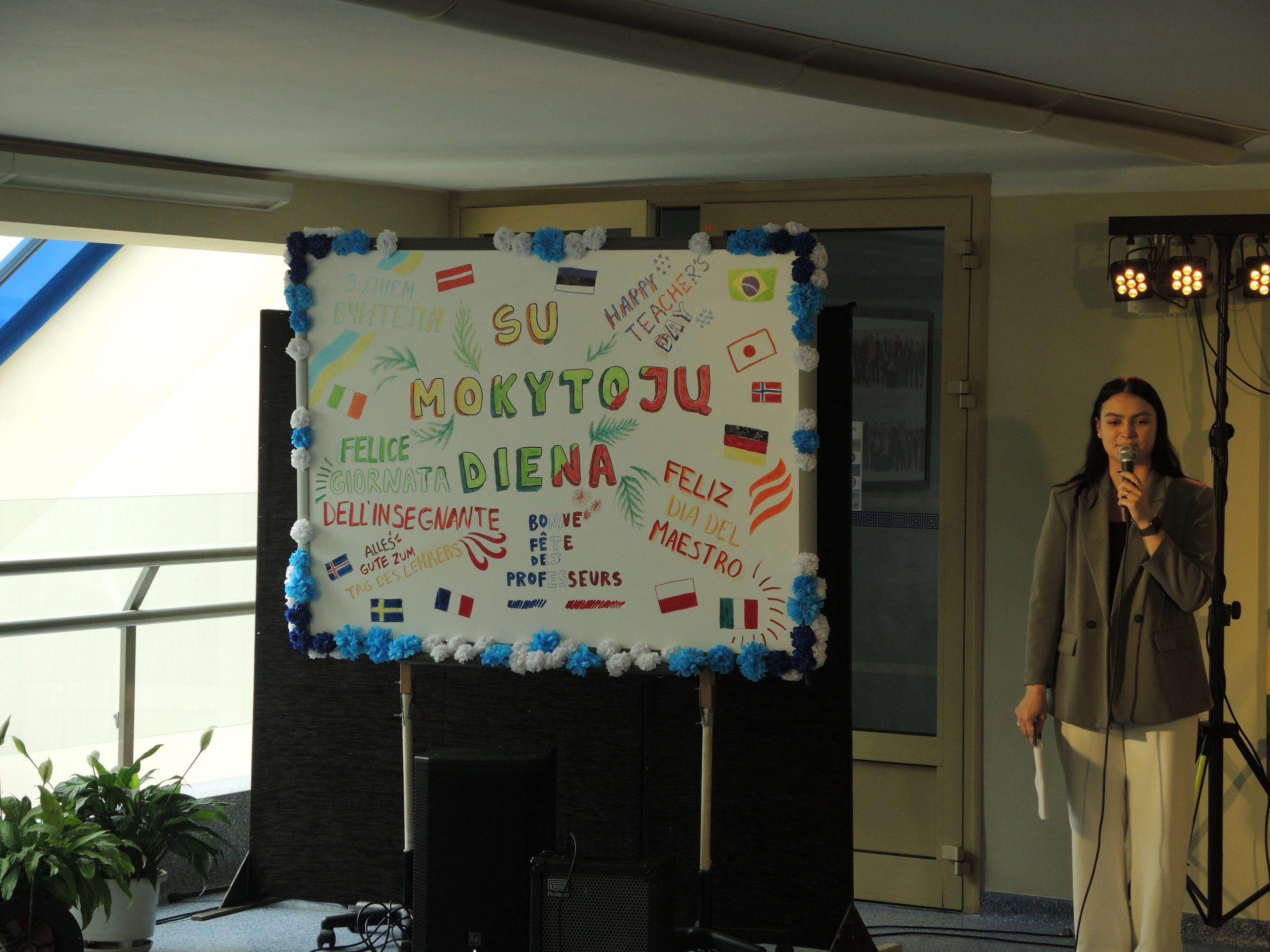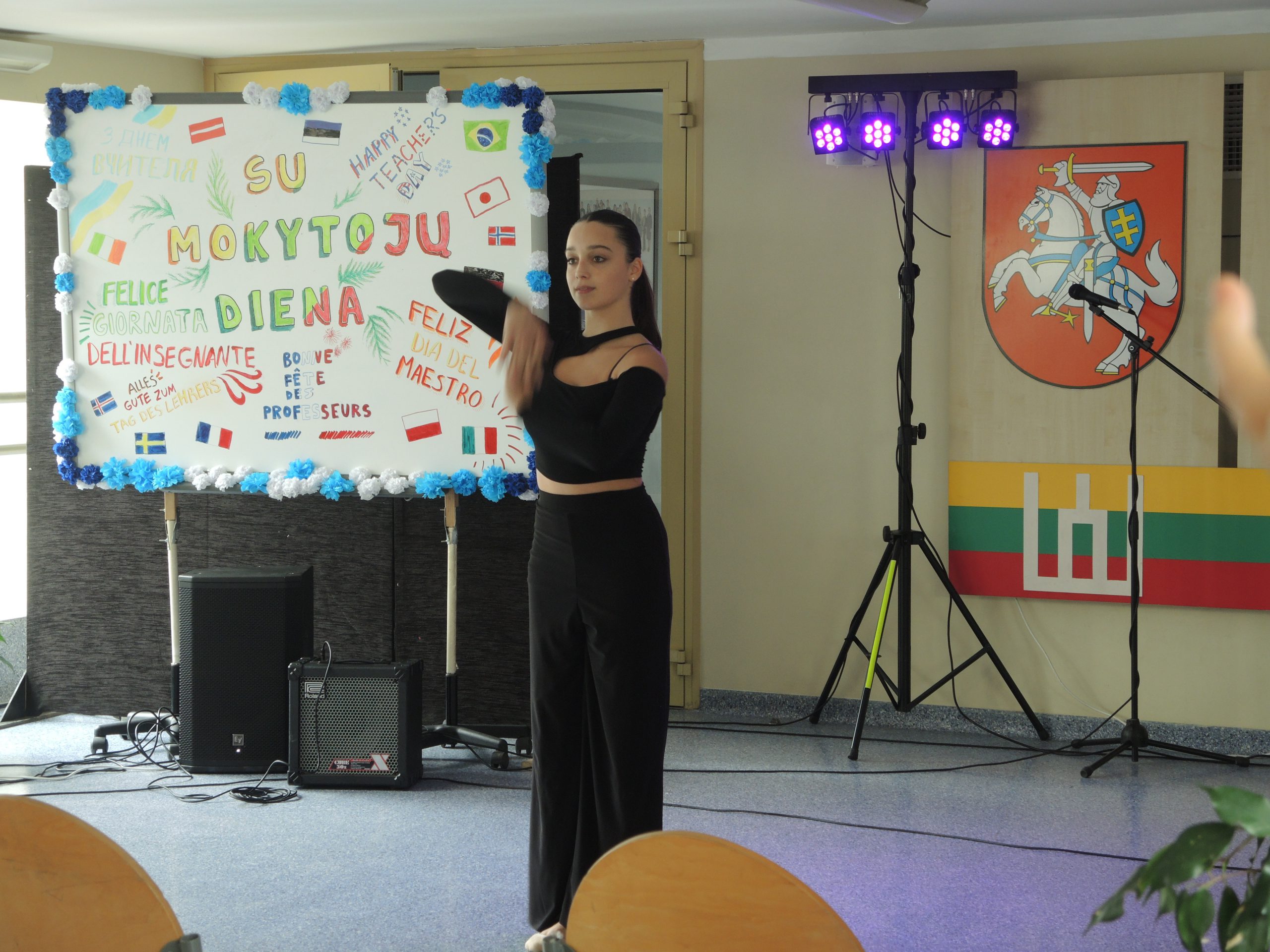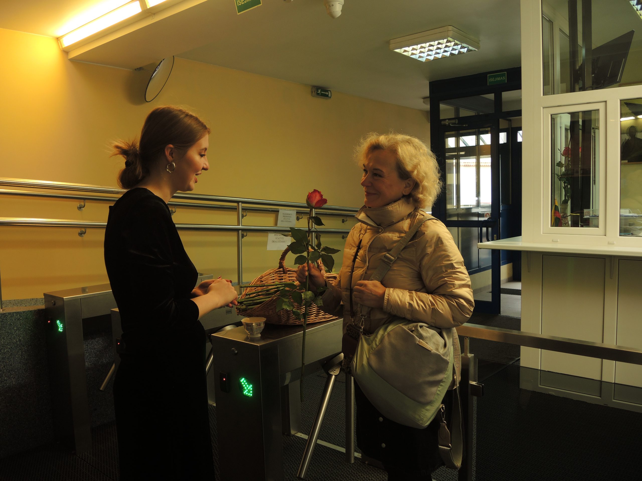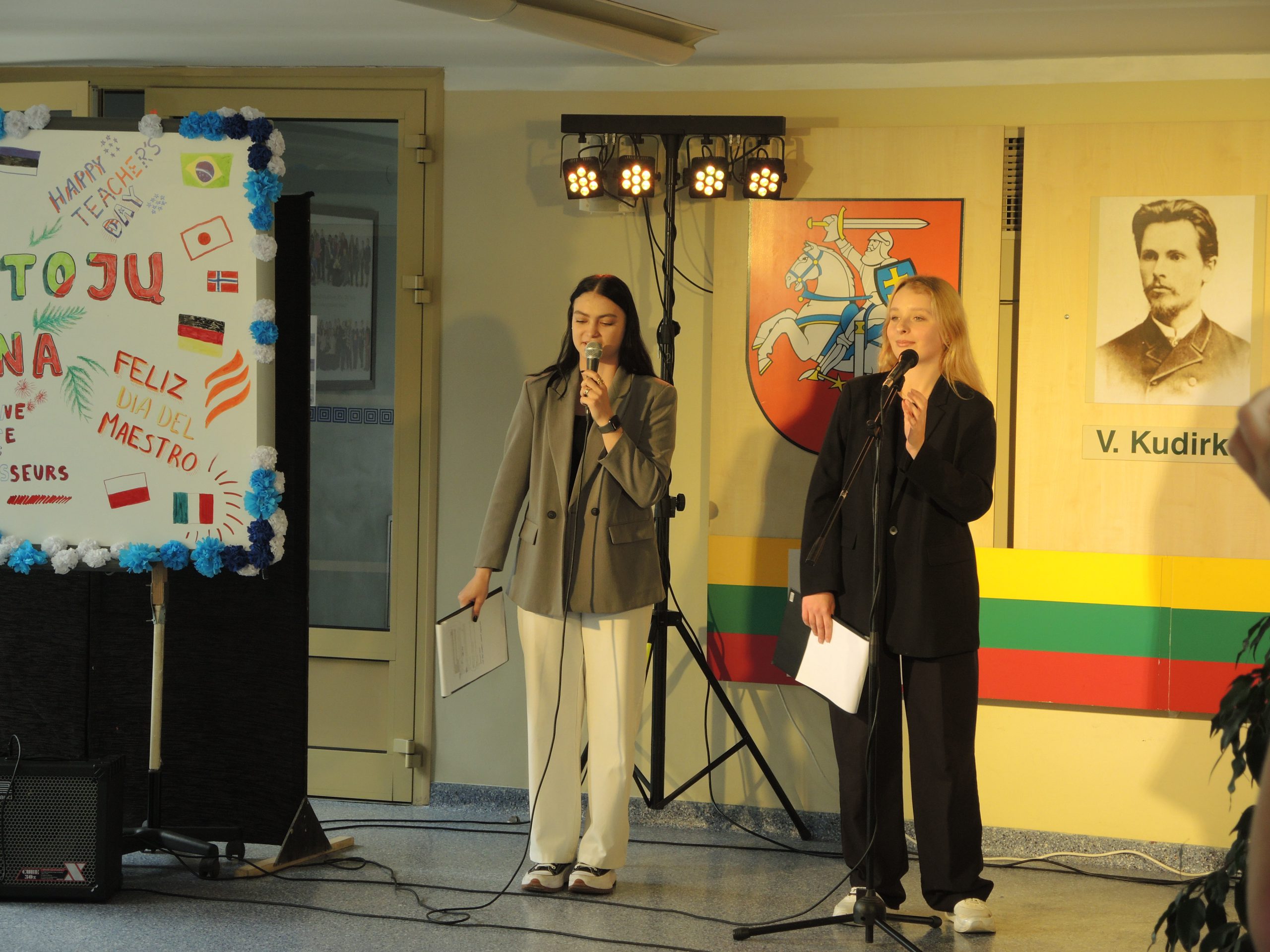 Vytauto Didžiojo gimnazijos mokytojams darganotą spalio 5 dienos rytmetį skleidėsi rožių žiedai, buvo atviras mokinių glėbys, o širdys pripildytos sveikinimų ir dėkingumo žodžių. Po šventinių vaišių abiturientai savo ugdytojus tradiciškai pakvietė į pačių organizuotą pamoką-koncertą. Dvyliktokai dovanojo savo pasirodymus, džiugino ne tik šmaikščiais, bet ir jautriais linkėjimais bei pažadais. Sušildyti mokinių dėmesio mokytojai leidosi į paslaptingą kelionę po XX a. istorinius ir kultūrinius labirintus drauge su spektaklio „Šimtmečio moterys“ veikėjomis, įkūnijusiomis žymias ir įtakingas to laikmečio visuomenės aktyvistes.