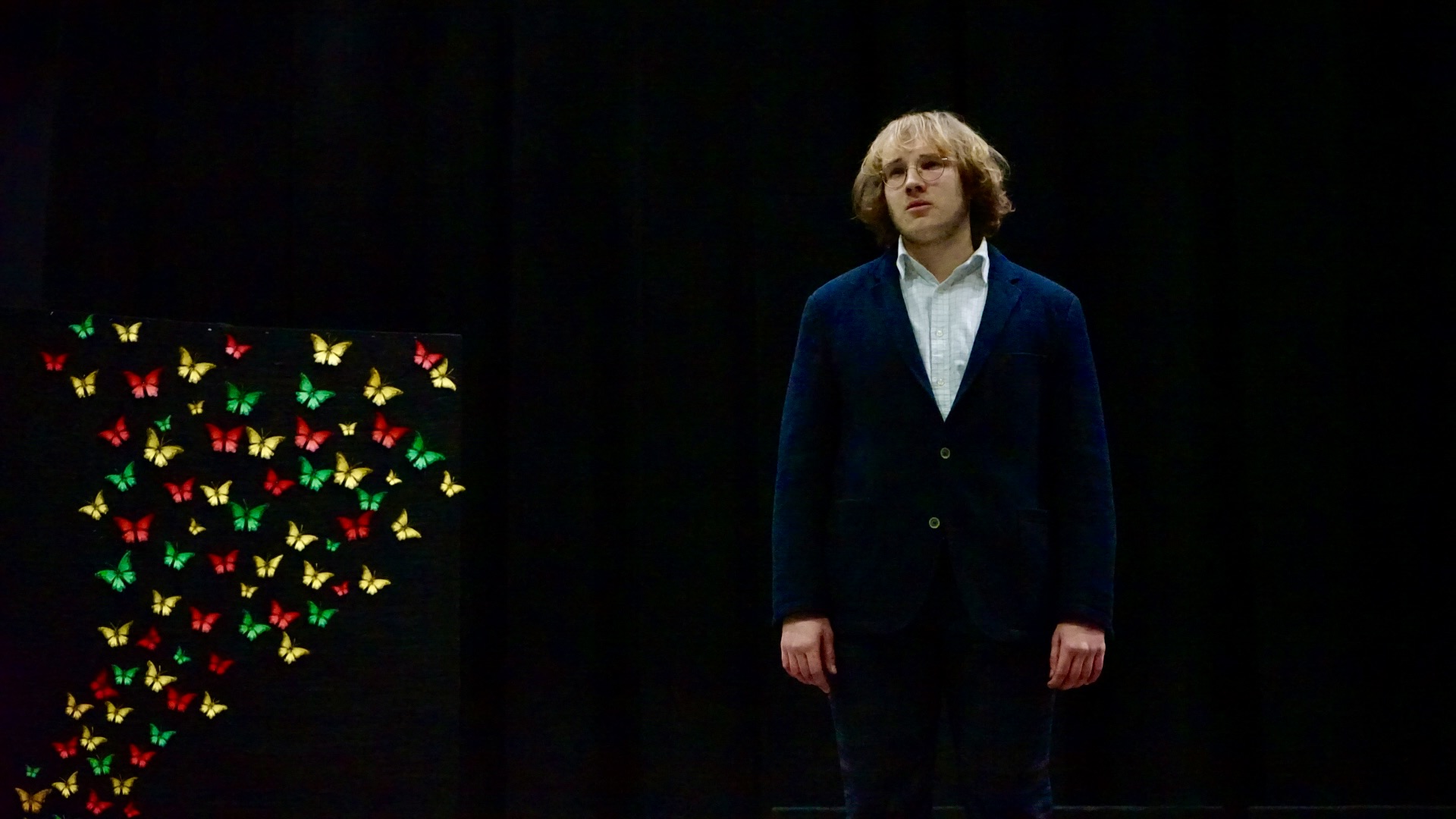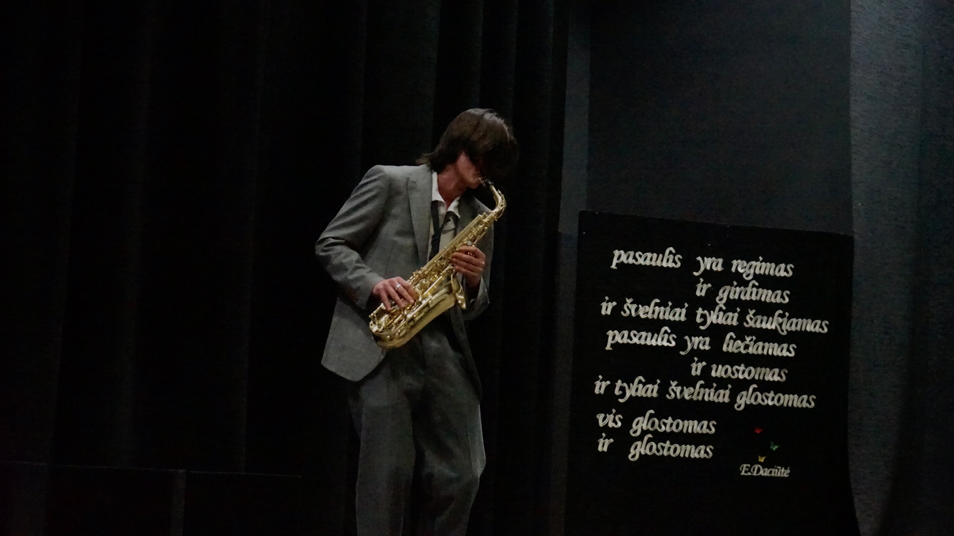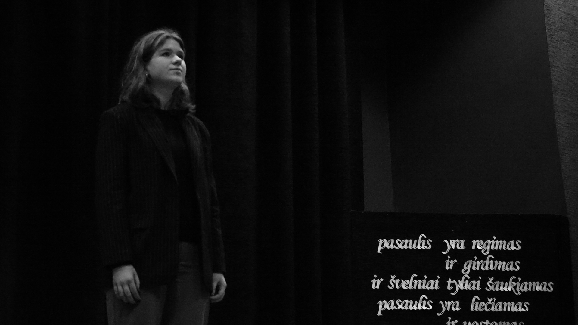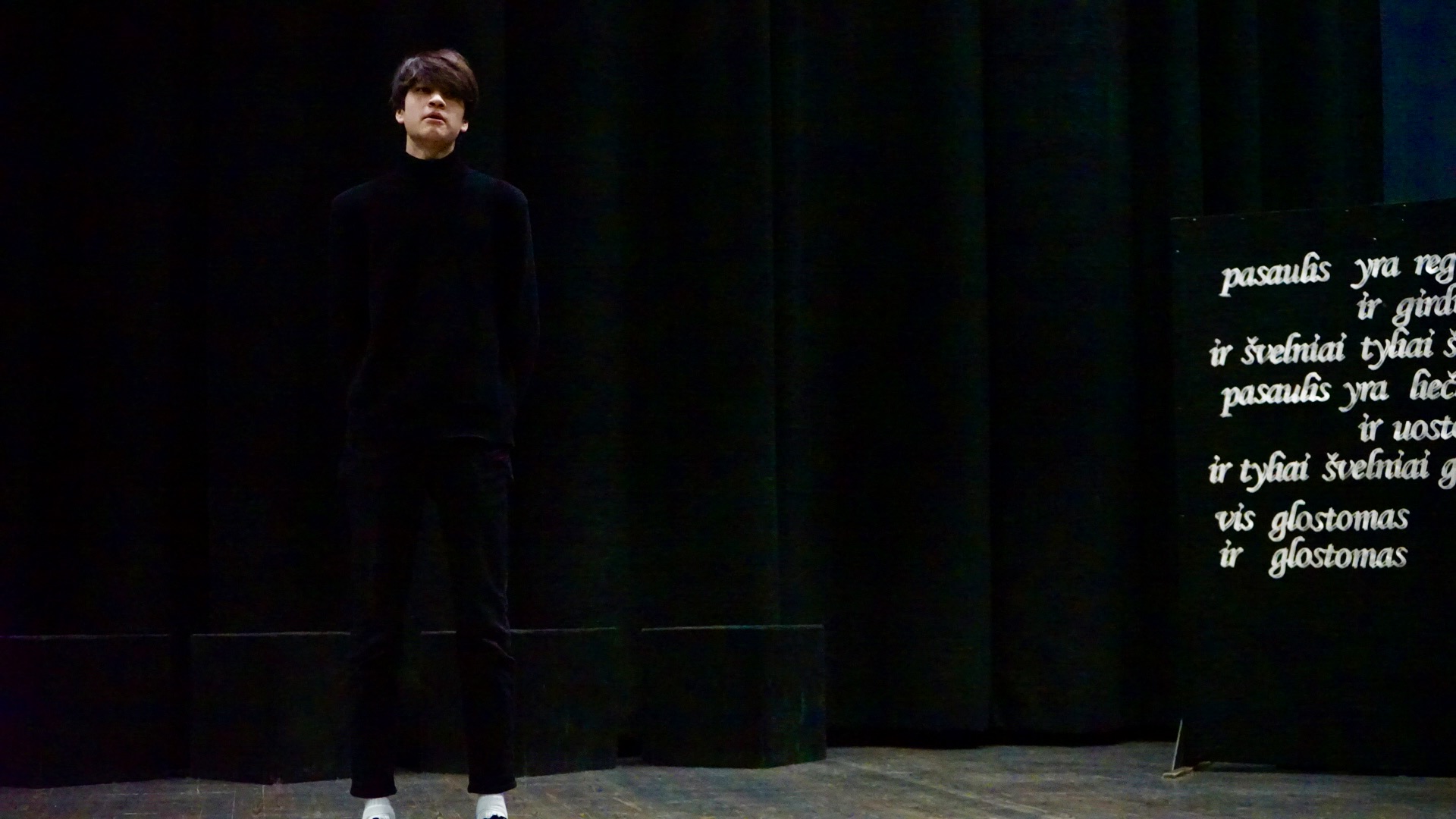 Dominykas Saulius Remeika. Vilniaus Salomėjos Nėries gimnazija. Mokytoja Dalia Roch. Ištrauka iš Jono Meko knygos „Pavieniai žodžiai“ („Miške“).