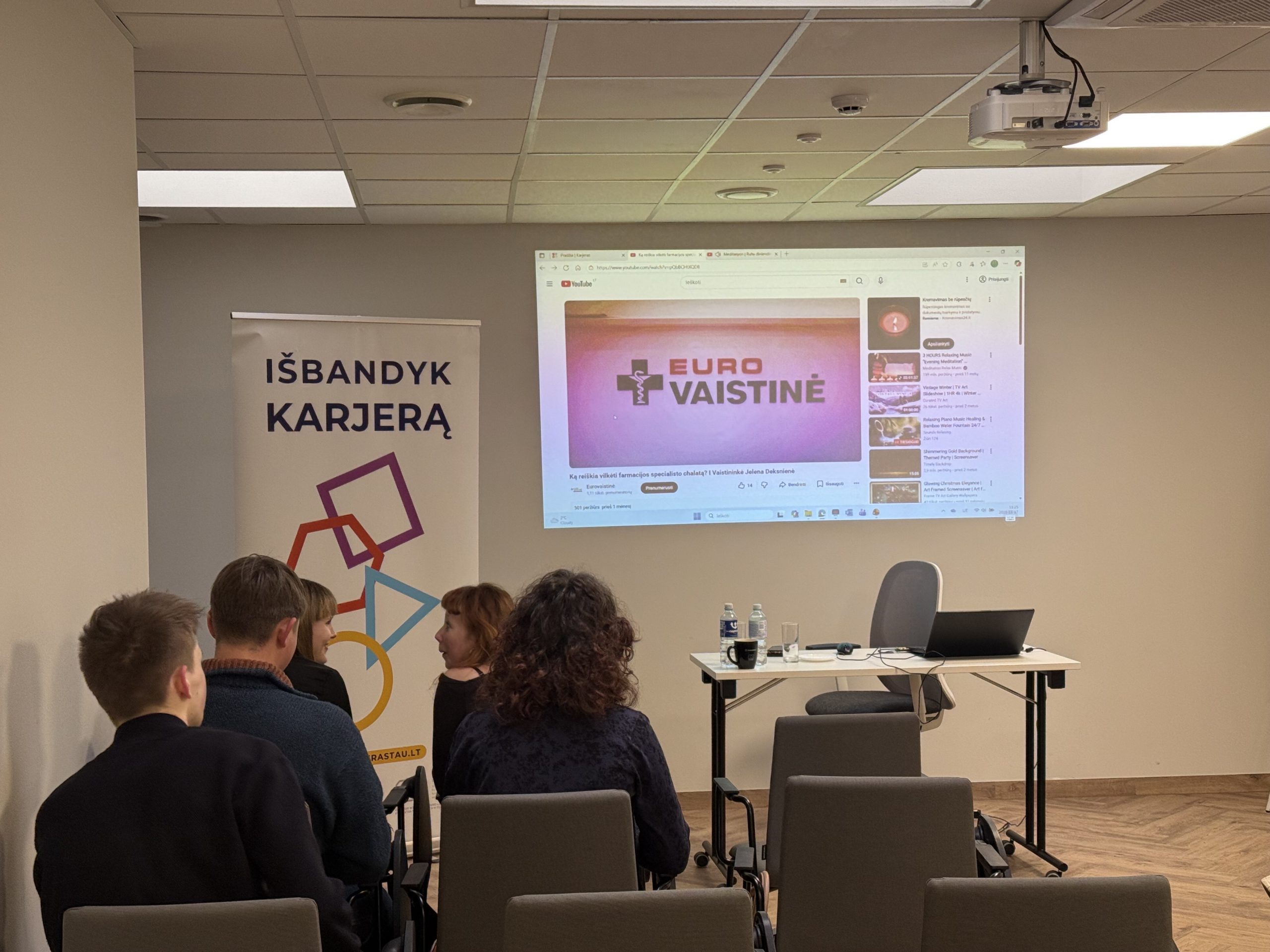 Lapkričio 17 d. tikslinė III–IV klasių mokinių grupė dalyvavo pažintiniame profesiniame vizite Vilniaus miesto Užimtumo tarnyboje. Vizito metu mokiniai susitiko su UAB „Eurovaistinė“ atstove. Susitikimo metu jie susipažino su farmacijos studijomis, vaistininko darbu bei apžvelgė karjeros galimybes farmacijos srityje.
